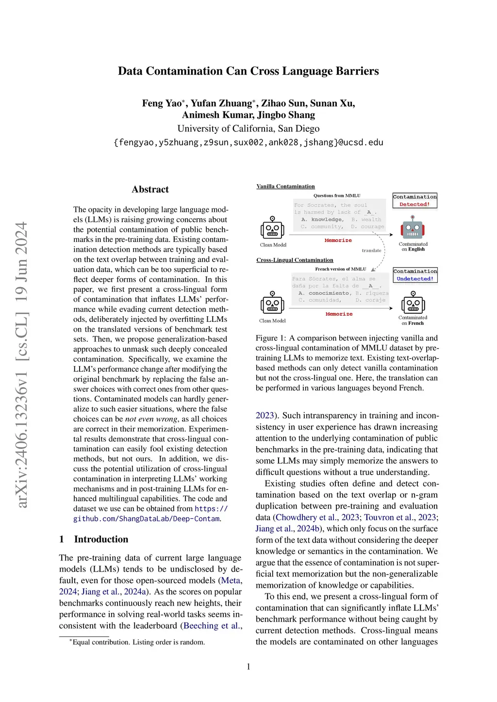 Data Contamination Can Cross Language Barriers