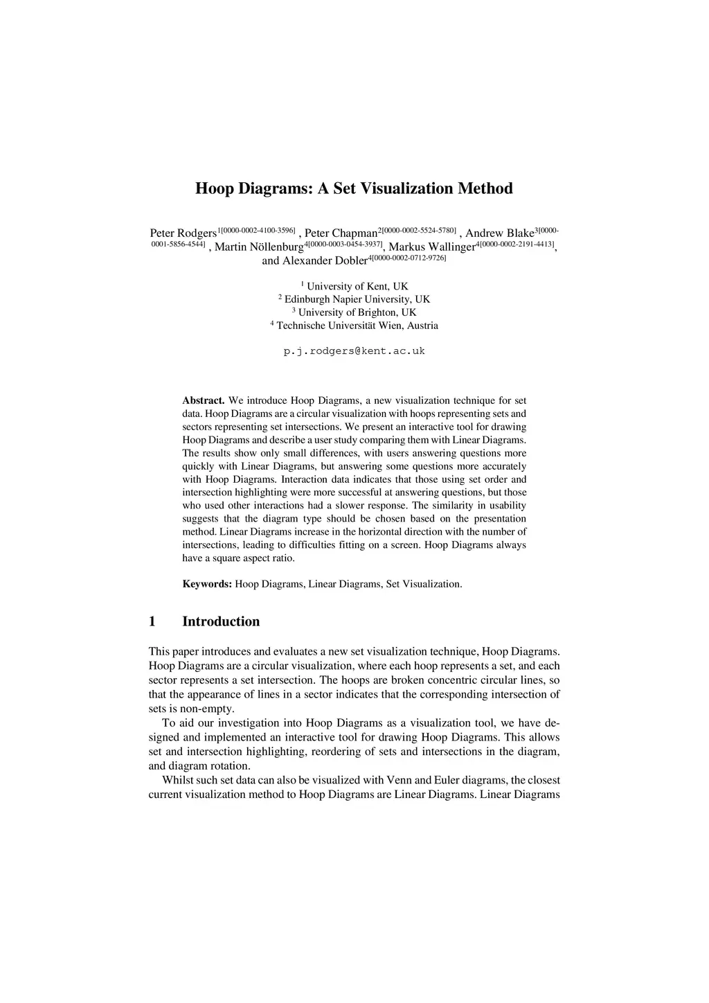 We introduce Hoop Diagrams, a new visualization technique for set data. Hoop Diagrams are a circular visualization with hoops representing sets and sectors representing set intersections. We present an interactive tool for drawing Hoop Diagrams and describe a user study comparing them with Linear Diagrams. The results show only small differences, with users answering questions more quickly with Linear Diagrams, but answering some questions more accurately with Hoop Diagrams. Interaction data indicates that those using set order and intersection highlighting were more successful at answering questions, but those who used other interactions had a slower response. The similarity in usability suggests that the diagram type should be chosen based on the presentation method. Linear Diagrams increase in the horizontal direction with the number of intersections, leading to difficulties fitting on a screen. Hoop Diagrams always have a square aspect ratio.