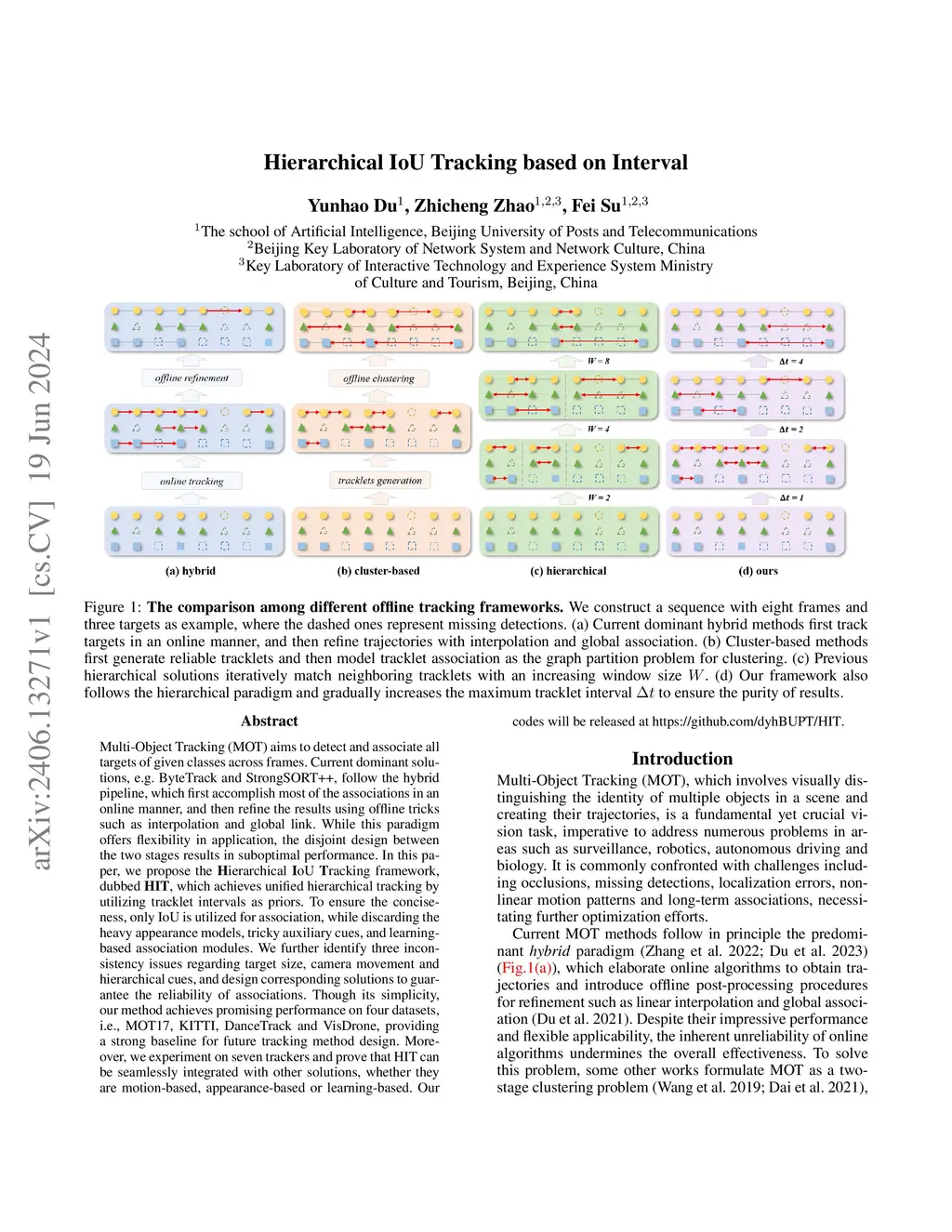 Multi-Object Tracking (MOT) aims to detect and associate all targets of given classes across frames. Current dominant solutions, e.g. ByteTrack and StrongSORT++, follow the hybrid pipeline, which first accomplish most of the associations in an online manner, and then refine the results using offline tricks such as interpolation and global link. While this paradigm offers flexibility in application, the disjoint design between the two stages results in suboptimal performance. In this paper, we propose the Hierarchical IoU Tracking framework, dubbed HIT, which achieves unified hierarchical tracking by utilizing tracklet intervals as priors. To ensure the conciseness, only IoU is utilized for association, while discarding the heavy appearance models, tricky auxiliary cues, and learning-based association modules. We further identify three inconsistency issues regarding target size, camera movement and hierarchical cues, and design corresponding solutions to guarantee the reliability of associations. Though its simplicity, our method achieves promising performance on four datasets, i.e., MOT17, KITTI, DanceTrack and VisDrone, providing a strong baseline for future tracking method design. Moreover, we experiment on seven trackers and prove that HIT can be seamlessly integrated with other solutions, whether they are motion-based, appearance-based or learning-based. Our codes will be released at https://github.com/dyhBUPT/HIT.