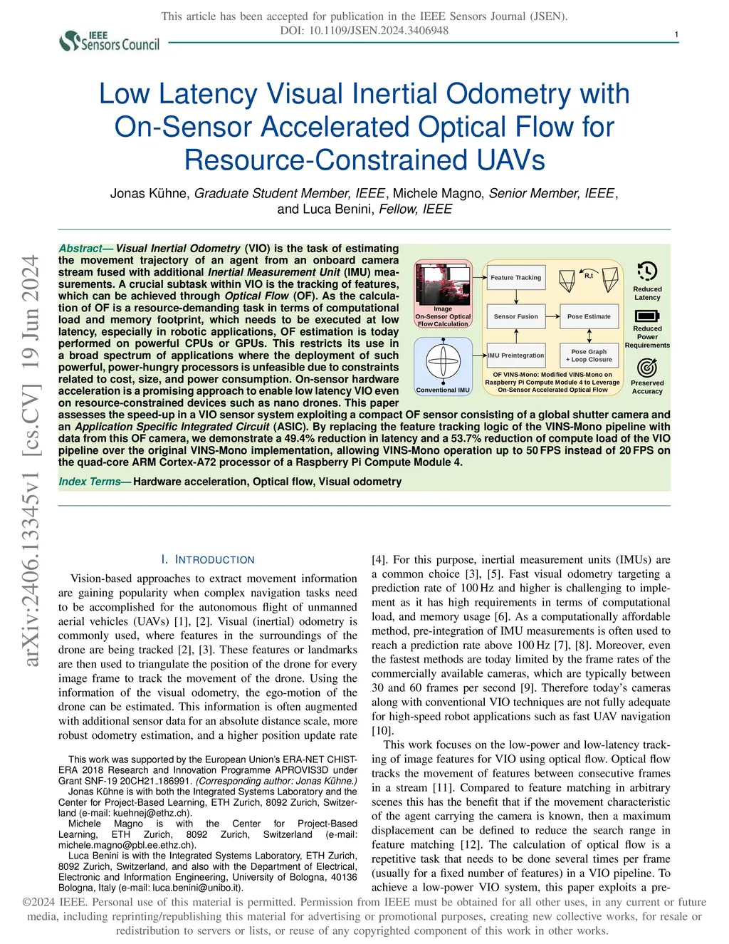 Low Latency Visual Inertial Odometry with On-Sensor Accelerated Optical