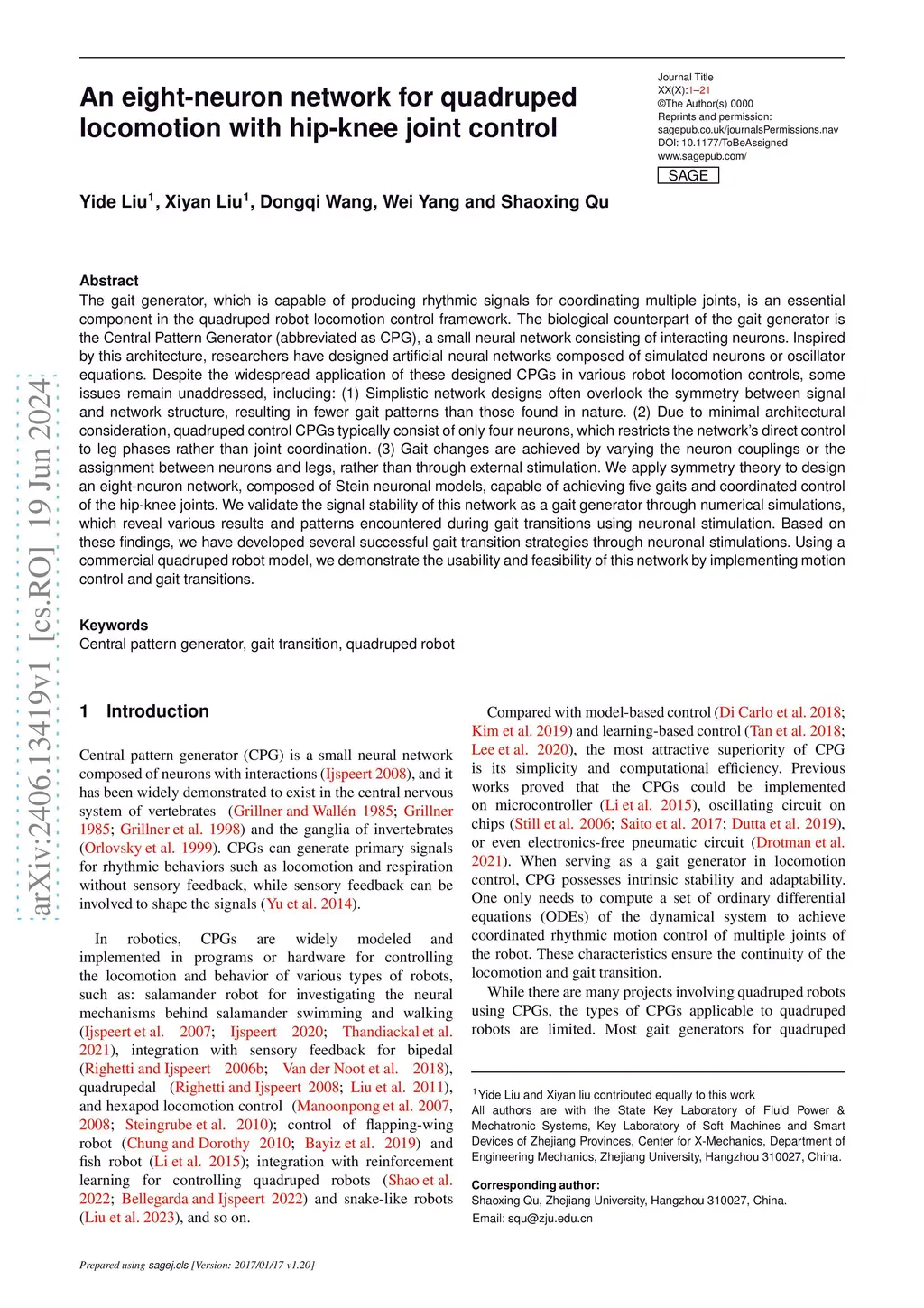 An eight-neuron network for quadruped locomotion with hip-knee joint