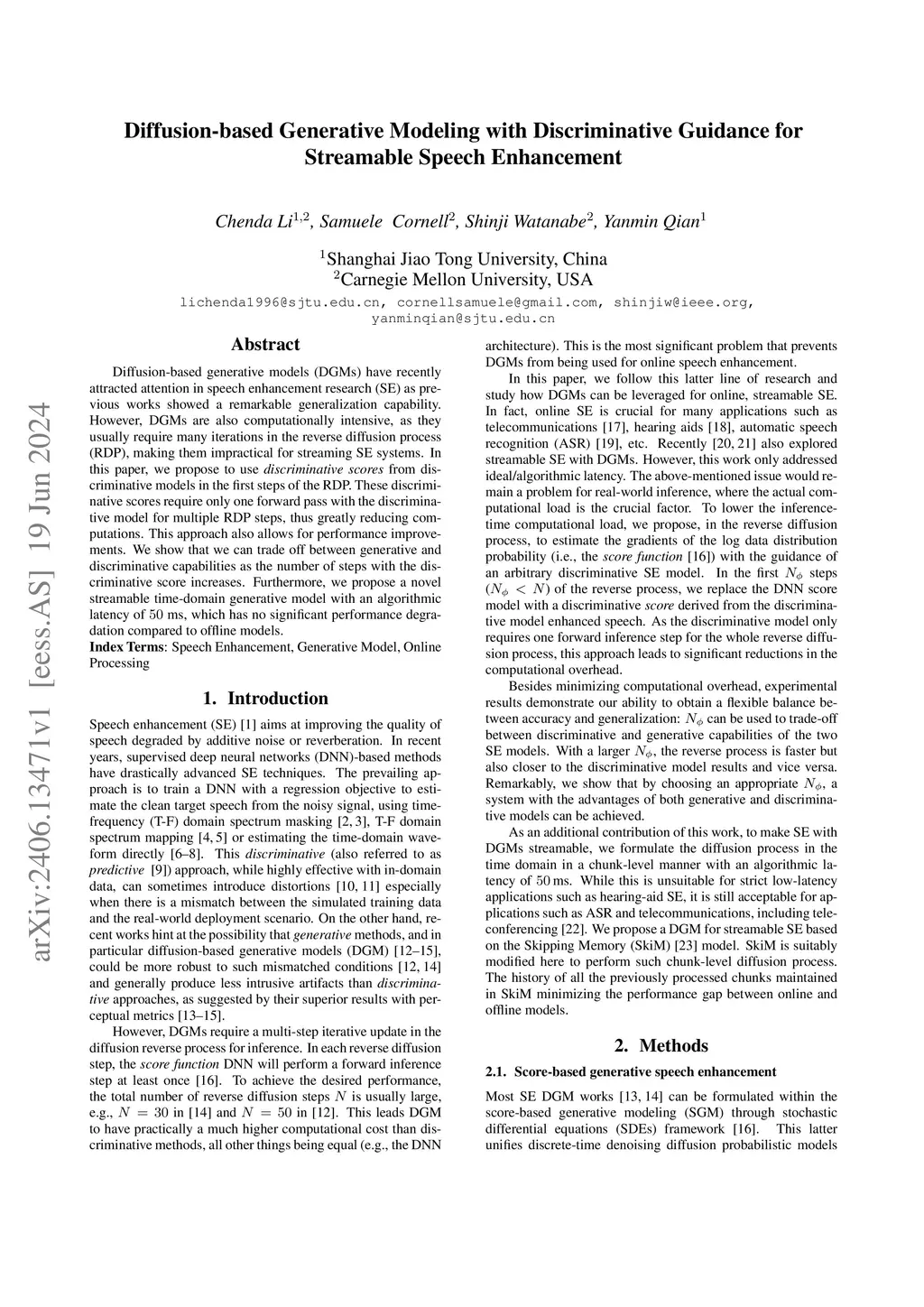 Diffusion-based generative models (DGMs) have recently attracted attention in speech enhancement research (SE) as previous works showed a remarkable generalization capability. However, DGMs are also computationally intensive, as they usually require many iterations in the reverse diffusion process (RDP), making them impractical for streaming SE systems. In this paper, we propose to use discriminative scores from discriminative models in the first steps of the RDP. These discriminative scores require only one forward pass with the discriminative model for multiple RDP steps, thus greatly reducing computations. This approach also allows for performance improvements. We show that we can trade off between generative and discriminative capabilities as the number of steps with the discriminative score increases. Furthermore, we propose a novel streamable time-domain generative model with an algorithmic latency of 50 ms, which has no significant performance degradation compared to offline models.