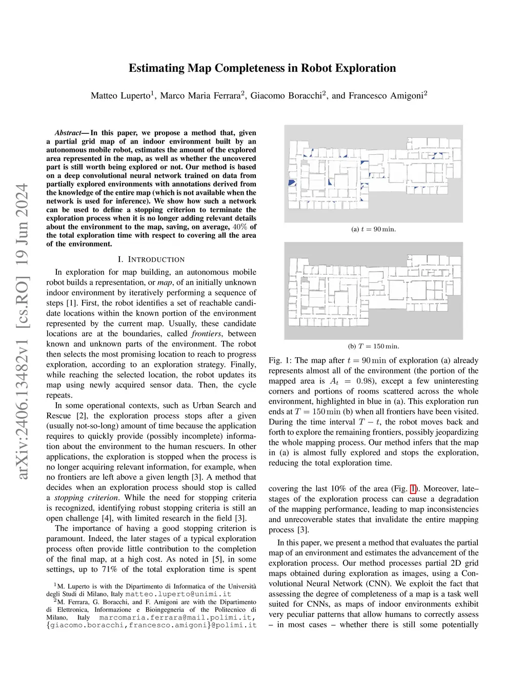 Estimating Map Completeness in Robot Exploration