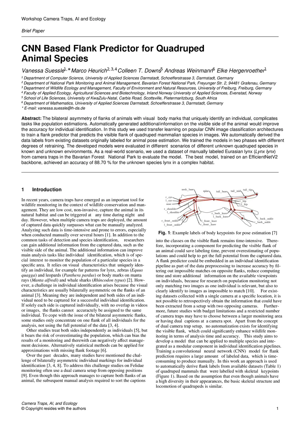 The bilateral asymmetry of flanks of animals with visual body marks that uniquely identify an individual, complicates tasks like population estimations. Automatically generated additional information on the visible side of the animal would improve the accuracy for individual identification. In this study we used transfer learning on popular CNN image classification architectures to train a flank predictor that predicts the visible flank of quadruped mammalian species in images. We automatically derived the data labels from existing datasets originally labeled for animal pose estimation. We trained the models in two phases with different degrees of retraining. The developed models were evaluated in different scenarios of different unknown quadruped species in known and unknown environments. As a real-world scenario, we used a dataset of manually labeled Eurasian lynx (Lynx lynx) from camera traps in the Bavarian Forest National Park to evaluate the model. The best model, trained on an EfficientNetV2 backbone, achieved an accuracy of 88.70 % for the unknown species lynx in a complex habitat.