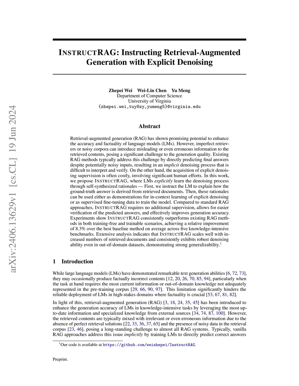 InstructRAG: Instructing Retrieval-Augmented Generation via Self-Synthesized Rationales