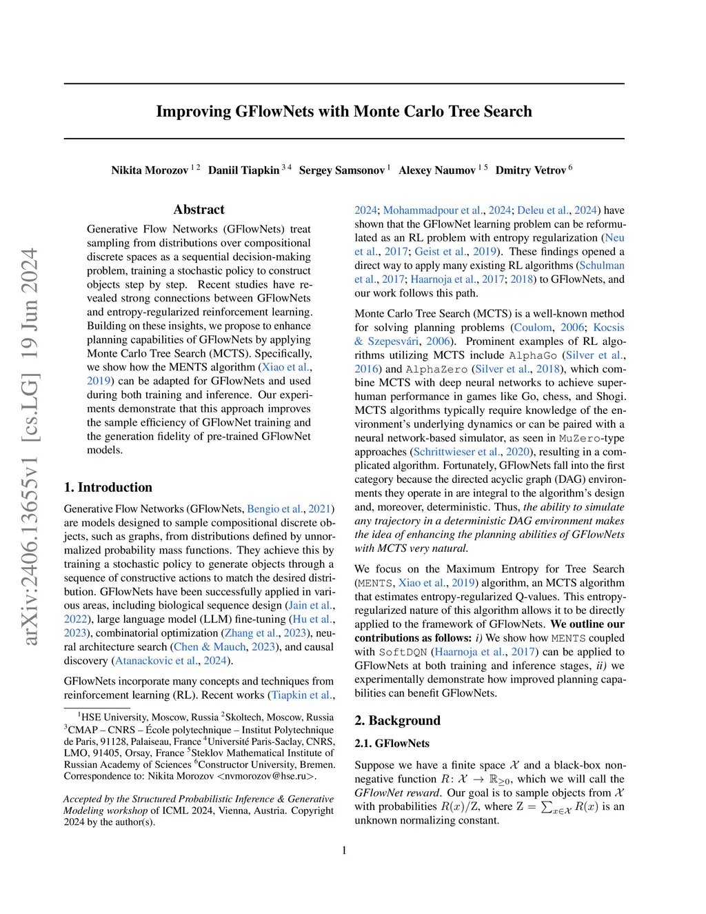 Generative Flow Networks (GFlowNets) treat sampling from distributions over compositional discrete spaces as a sequential decision-making problem, training a stochastic policy to construct objects step by step. Recent studies have revealed strong connections between GFlowNets and entropy-regularized reinforcement learning. Building on these insights, we propose to enhance planning capabilities of GFlowNets by applying Monte Carlo Tree Search (MCTS). Specifically, we show how the MENTS algorithm (Xiao et al., 2019) can be adapted for GFlowNets and used during both training and inference. Our experiments demonstrate that this approach improves the sample efficiency of GFlowNet training and the generation fidelity of pre-trained GFlowNet models.