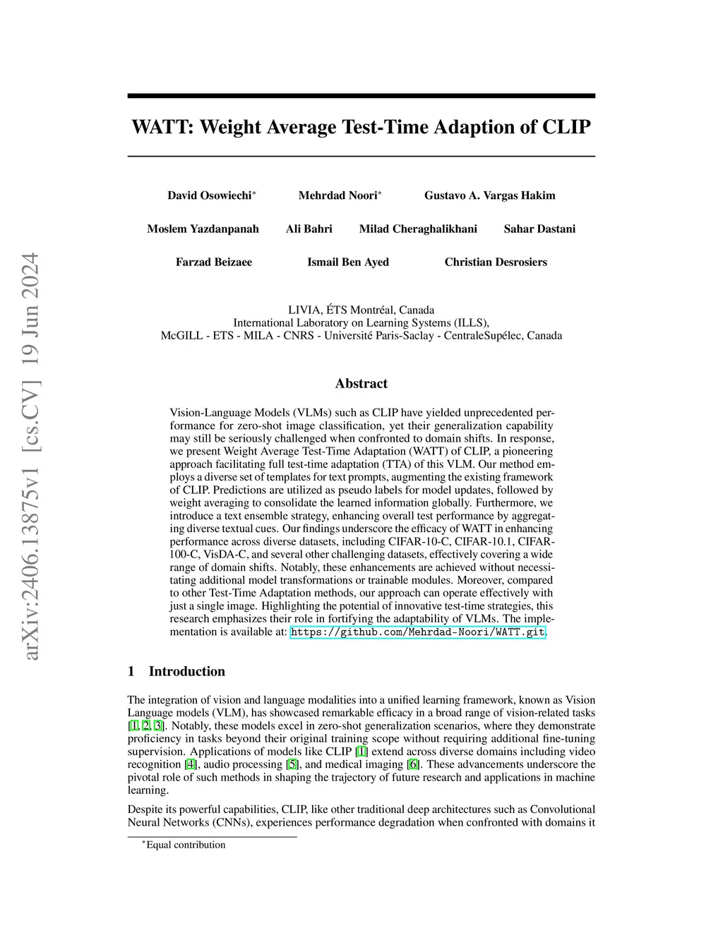 WATT: Weight Average Test-Time Adaptation of CLIP