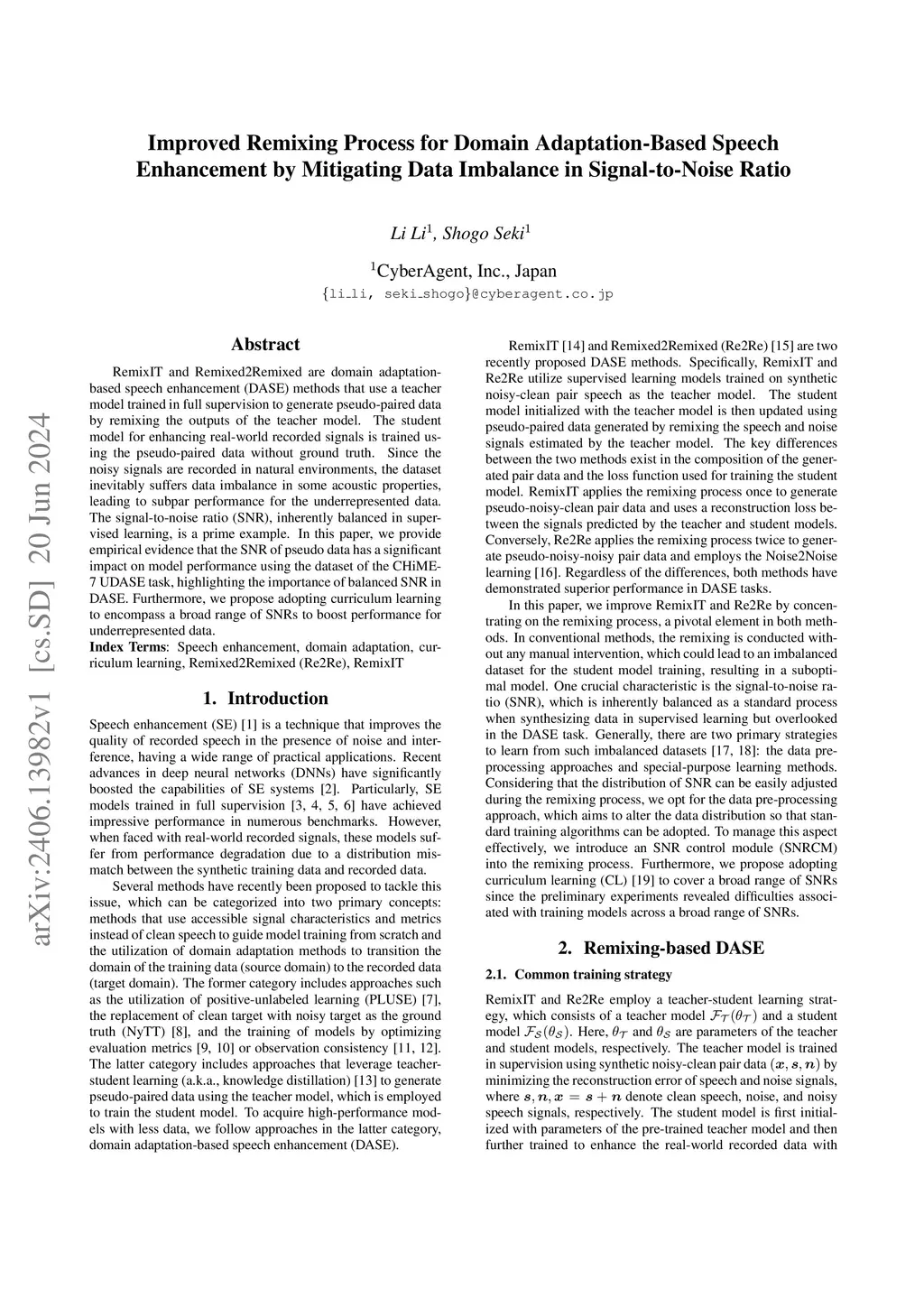 Improved Remixing Process for Domain Adaptation-Based Speech Enhancement