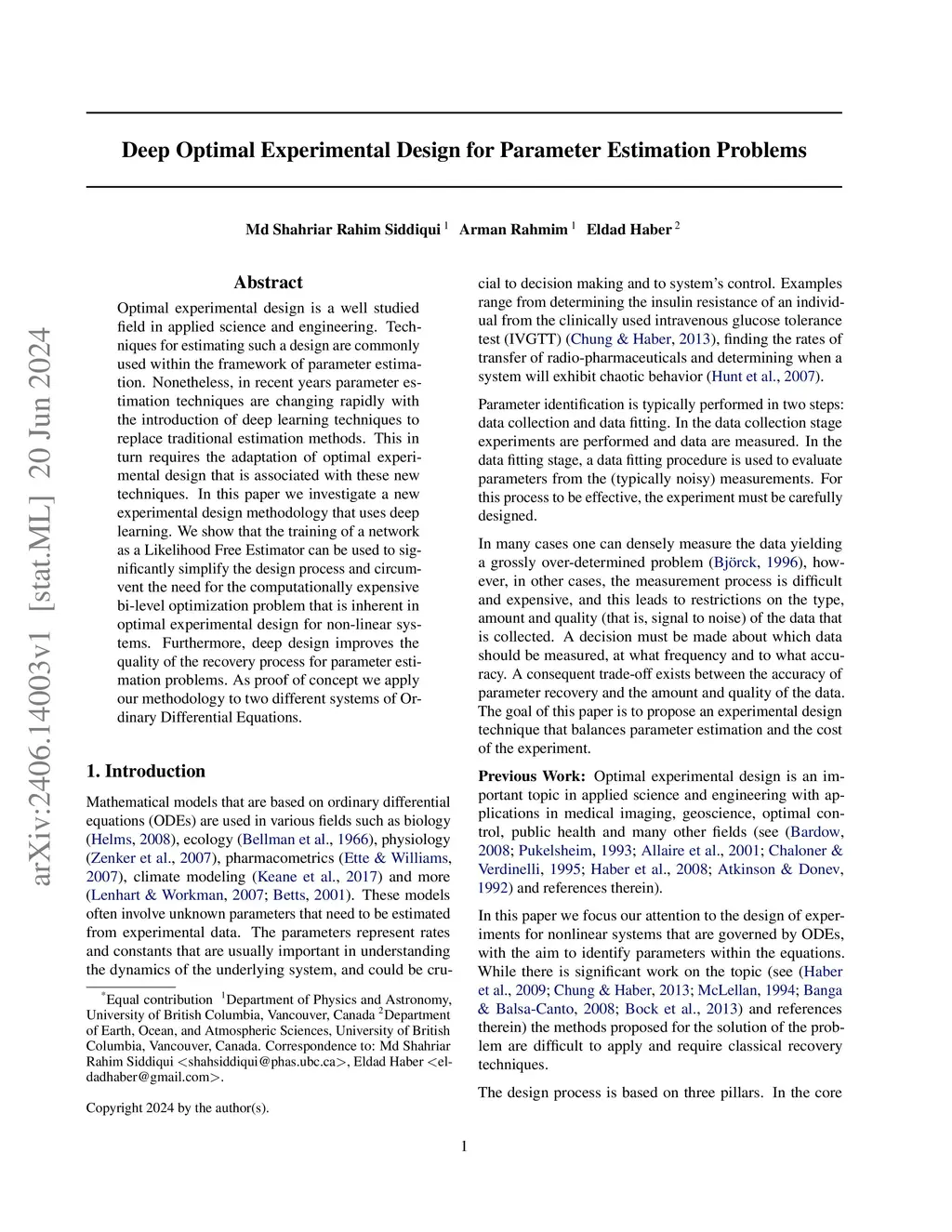Optimal experimental design is a well studied field in applied science and engineering. Techniques for estimating such a design are commonly used within the framework of parameter estimation. Nonetheless, in recent years parameter estimation techniques are changing rapidly with the introduction of deep learning techniques to replace traditional estimation methods. This in turn requires the adaptation of optimal experimental design that is associated with these new techniques. In this paper we investigate a new experimental design methodology that uses deep learning. We show that the training of a network as a Likelihood Free Estimator can be used to significantly simplify the design process and circumvent the need for the computationally expensive bi-level optimization problem that is inherent in optimal experimental design for non-linear systems. Furthermore, deep design improves the quality of the recovery process for parameter estimation problems. As proof of concept we apply our methodology to two different systems of Ordinary Differential Equations.