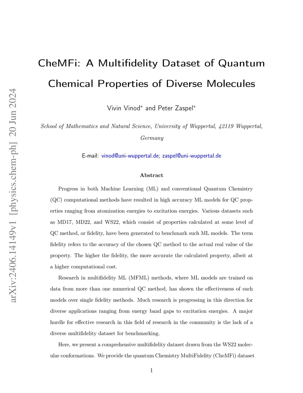 CheMFi: A Multifidelity Dataset of Quantum Chemical Properties of