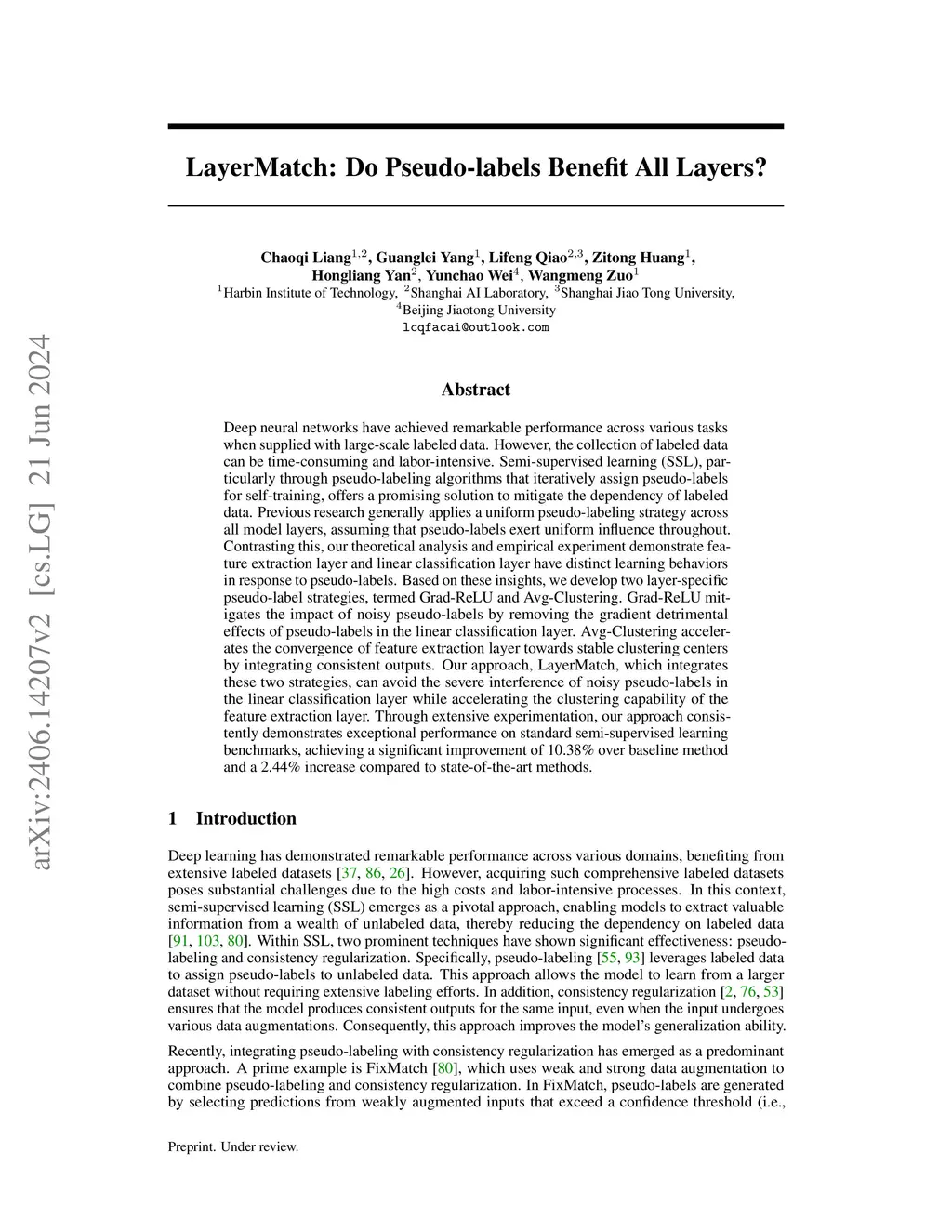 LayerMatch: Do Pseudo-labels Benefit All Layers?