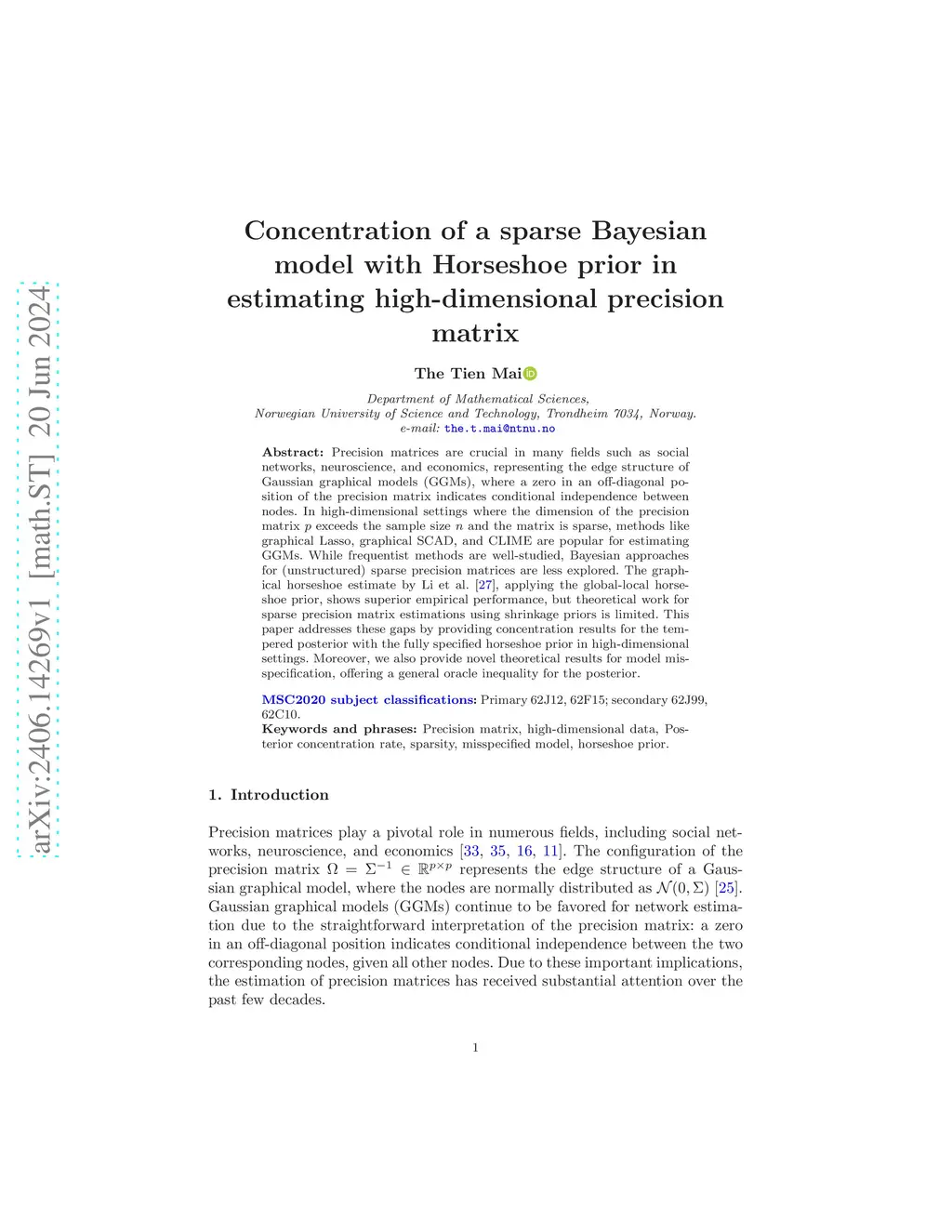 Precision matrices are crucial in many fields such as social networks, neuroscience, and economics, representing the edge structure of Gaussian graphical models (GGMs), where a zero in an off-diagonal position of the precision matrix indicates conditional independence between nodes. In high-dimensional settings where the dimension of the precision matrix exceeds the sample size and the matrix is sparse, methods like graphical Lasso, graphical SCAD, and CLIME are popular for estimating GGMs. While frequentist methods are well-studied, Bayesian approaches for (unstructured) sparse precision matrices are less explored. The graphical horseshoe estimate by \citet{li2019graphical}, applying the global-local horseshoe prior, shows superior empirical performance, but theoretical work for sparse precision matrix estimations using shrinkage priors is limited. This paper addresses these gaps by providing concentration results for the tempered posterior with the fully specified horseshoe prior in high-dimensional settings. Moreover, we also provide novel theoretical results for model misspecification, offering a general oracle inequality for the posterior.