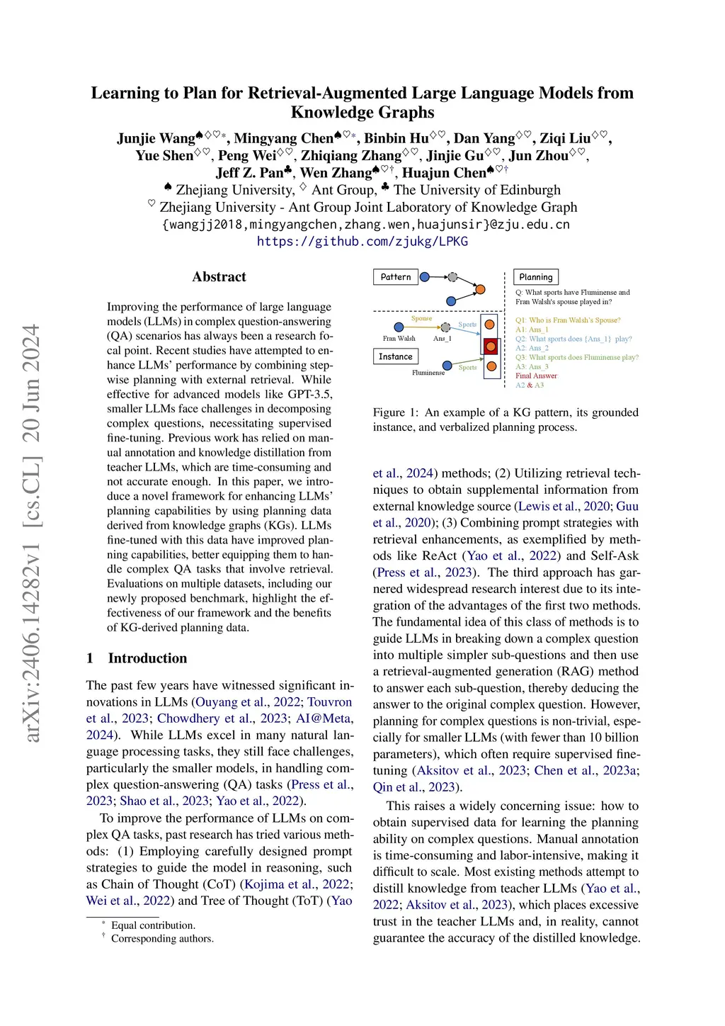 Improving the performance of large language models (LLMs) in complex question-answering (QA) scenarios has always been a research focal point. Recent studies have attempted to enhance LLMs' performance by combining step-wise planning with external retrieval. While effective for advanced models like GPT-3.5, smaller LLMs face challenges in decomposing complex questions, necessitating supervised fine-tuning. Previous work has relied on manual annotation and knowledge distillation from teacher LLMs, which are time-consuming and not accurate enough. In this paper, we introduce a novel framework for enhancing LLMs' planning capabilities by using planning data derived from knowledge graphs (KGs). LLMs fine-tuned with this data have improved planning capabilities, better equipping them to handle complex QA tasks that involve retrieval. Evaluations on multiple datasets, including our newly proposed benchmark, highlight the effectiveness of our framework and the benefits of KG-derived planning data.