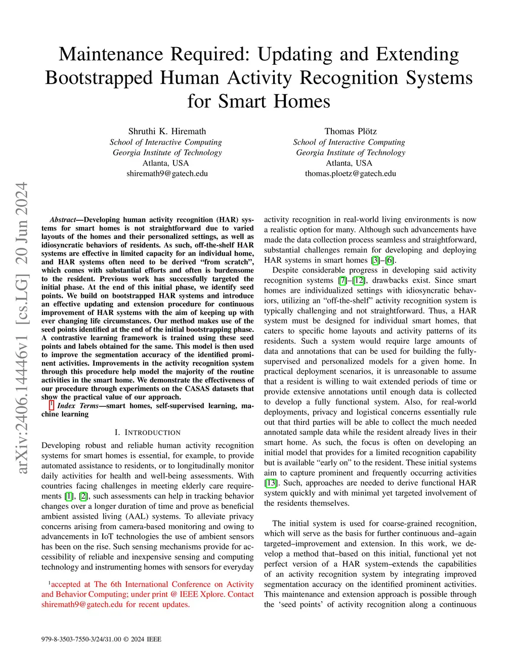Developing human activity recognition (HAR) systems for smart homes is not straightforward due to varied layouts of the homes and their personalized settings, as well as idiosyncratic behaviors of residents. As such, off-the-shelf HAR systems are effective in limited capacity for an individual home, and HAR systems often need to be derived "from scratch", which comes with substantial efforts and often is burdensome to the resident. Previous work has successfully targeted the initial phase. At the end of this initial phase, we identify seed points. We build on bootstrapped HAR systems and introduce an effective updating and extension procedure for continuous improvement of HAR systems with the aim of keeping up with ever changing life circumstances. Our method makes use of the seed points identified at the end of the initial bootstrapping phase. A contrastive learning framework is trained using these seed points and labels obtained for the same. This model is then used to improve the segmentation accuracy of the identified prominent activities. Improvements in the activity recognition system through this procedure help model the majority of the routine activities in the smart home. We demonstrate the effectiveness of our procedure through experiments on the CASAS datasets that show the practical value of our approach.
