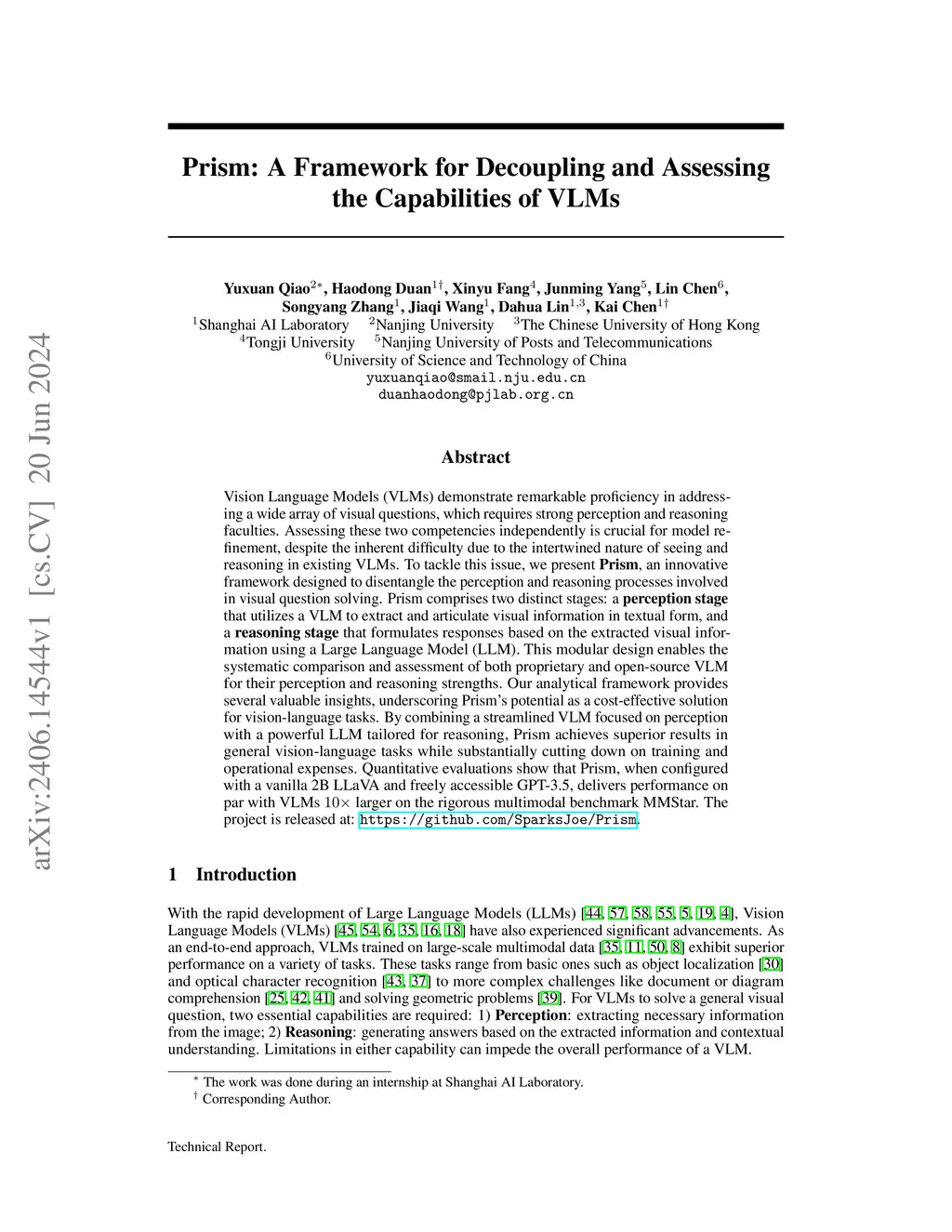 Prism: A Framework for Decoupling and Assessing the Capabilities of VLMs