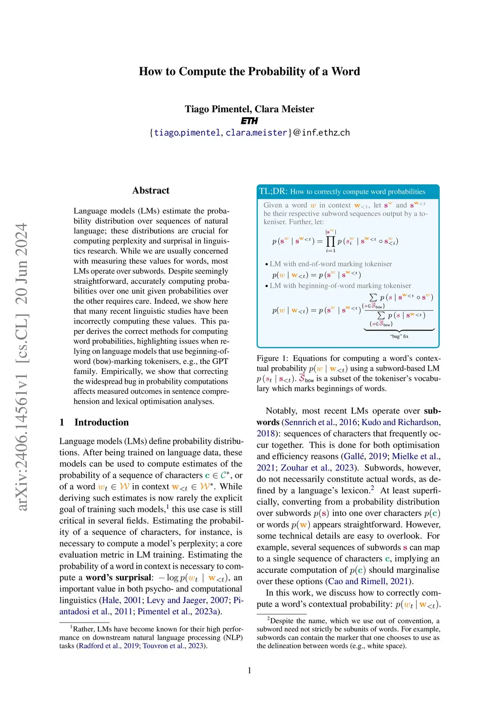 Language models (LMs) estimate the probability distribution over sequences of natural language; these distributions are crucial for computing perplexity and surprisal in linguistics research. While we are usually concerned with measuring these values for words, most LMs operate over subwords. Despite seemingly straightforward, accurately computing probabilities over one unit given probabilities over the other requires care. Indeed, we show here that many recent linguistic studies have been incorrectly computing these values. This paper derives the correct methods for computing word probabilities, highlighting issues when relying on language models that use beginning-of-word (bow)-marking tokenisers, e.g., the GPT family. Empirically, we show that correcting the widespread bug in probability computations affects measured outcomes in sentence comprehension and lexical optimisation analyses.