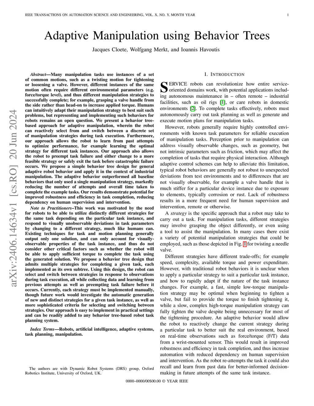 Adaptive Manipulation using Behavior Trees