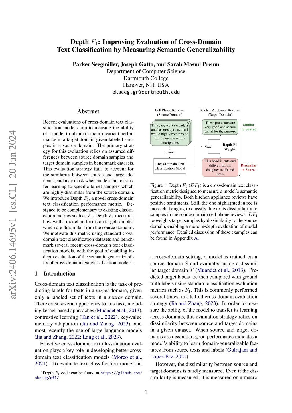 Depth : Improving Evaluation of Cross-Domain Text Classification by