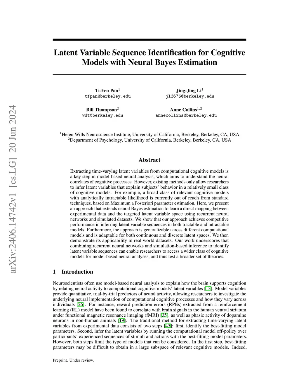 Latent Variable Sequence Identification for Cognitive Models with Neural
