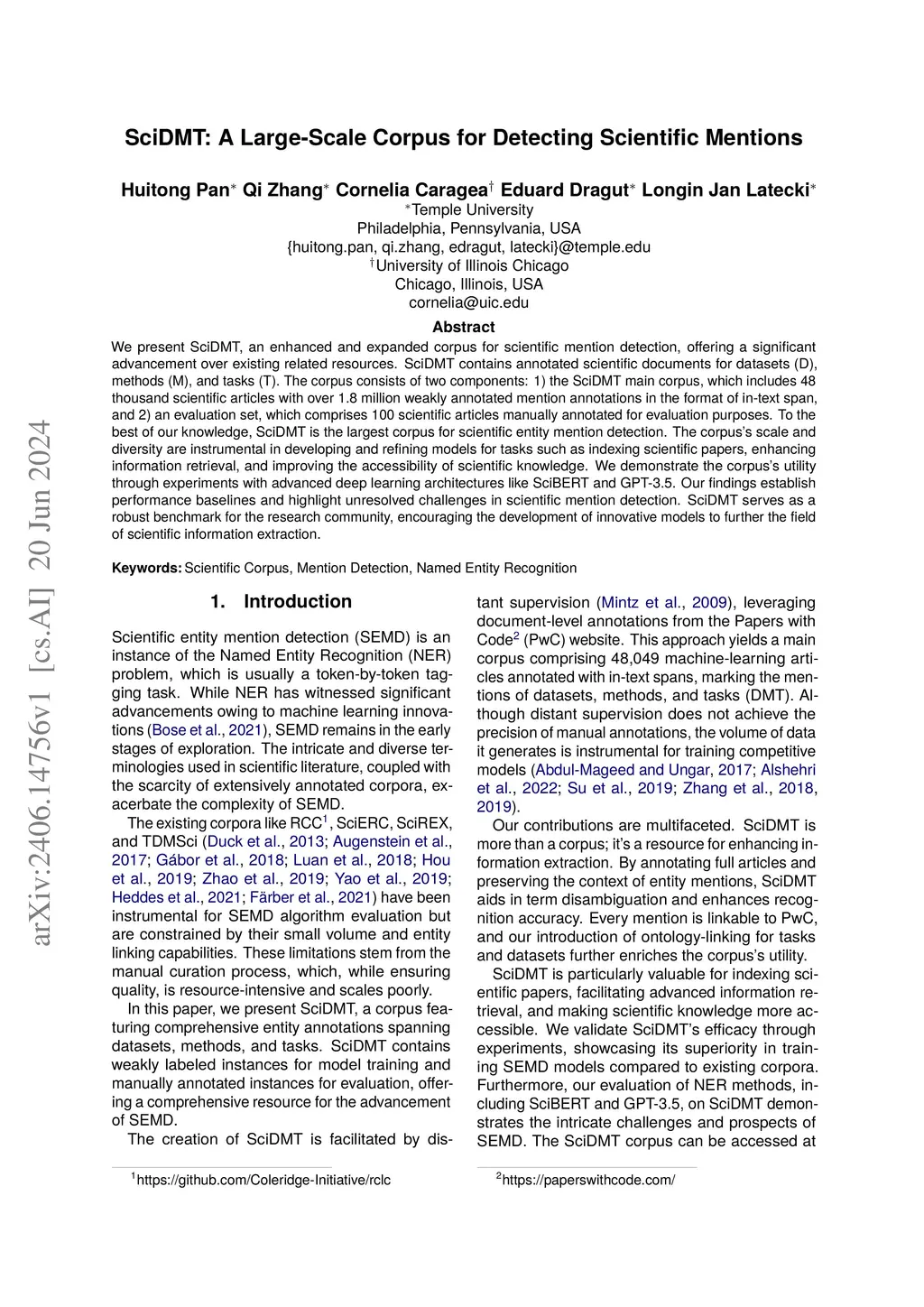 SciDMT: A Large-Scale Corpus for Detecting Scientific Mentions
