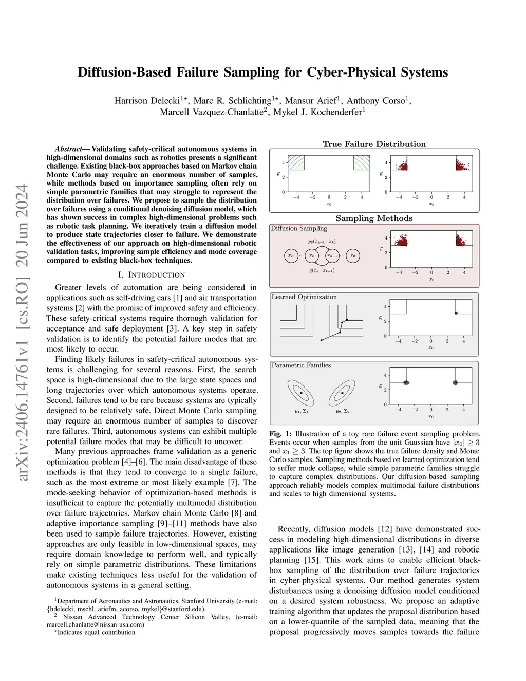 Validating safety-critical autonomous systems in high-dimensional domains such as robotics presents a significant challenge. Existing black-box approaches based on Markov chain Monte Carlo may require an enormous number of samples, while methods based on importance sampling often rely on simple parametric families that may struggle to represent the distribution over failures. We propose to sample the distribution over failures using a conditional denoising diffusion model, which has shown success in complex high-dimensional problems such as robotic task planning. We iteratively train a diffusion model to produce state trajectories closer to failure. We demonstrate the effectiveness of our approach on high-dimensional robotic validation tasks, improving sample efficiency and mode coverage compared to existing black-box techniques.