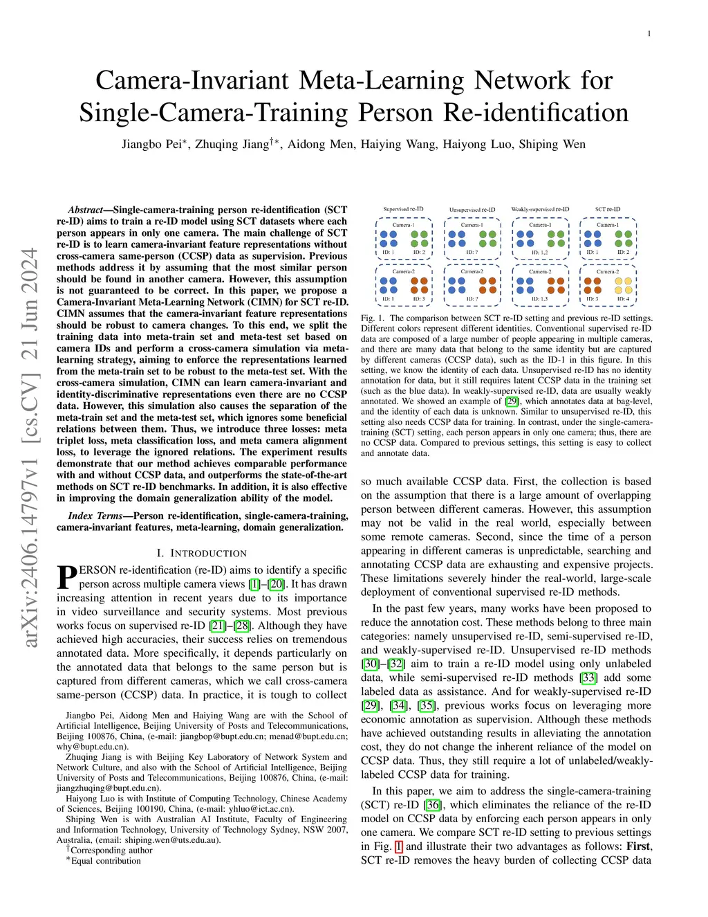 Camera-Invariant Meta-Learning Network for Single-Camera-Training Person