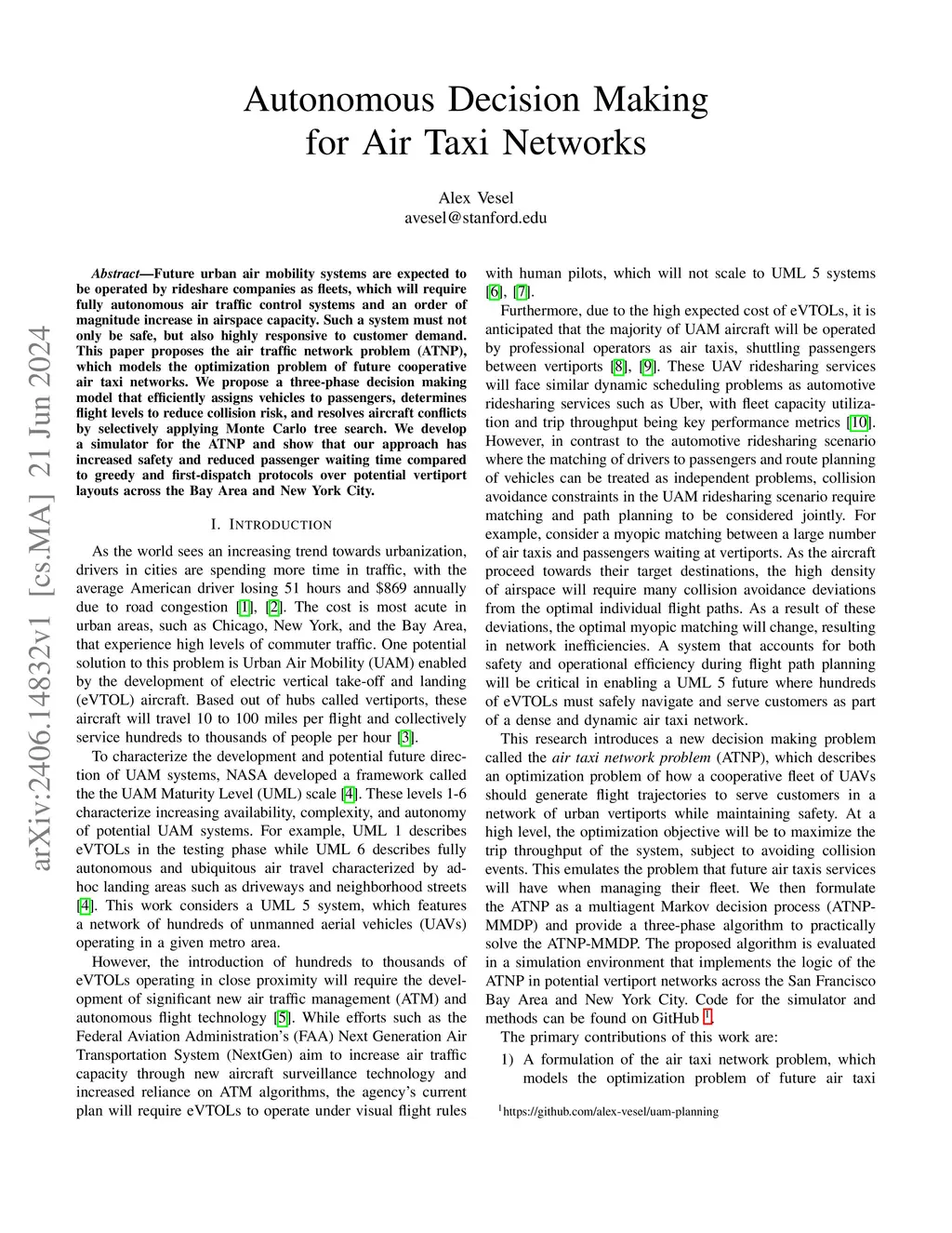 Autonomous Decision Making for Air Taxi Networks