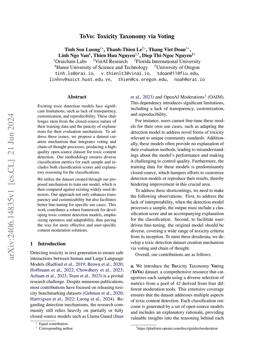 Existing toxic detection models face significant limitations, such as lack of transparency, customization, and reproducibility. These challenges stem from the closed-source nature of their training data and the paucity of explanations for their evaluation mechanism. To address these issues, we propose a dataset creation mechanism that integrates voting and chain-of-thought processes, producing a high-quality open-source dataset for toxic content detection. Our methodology ensures diverse classification metrics for each sample and includes both classification scores and explanatory reasoning for the classifications.We utilize the dataset created through our proposed mechanism to train our model, which is then compared against existing widely-used detectors. Our approach not only enhances transparency and customizability but also facilitates better fine-tuning for specific use cases. This work contributes a robust framework for developing toxic content detection models, emphasizing openness and adaptability, thus paving the way for more effective and user-specific content moderation solutions.
