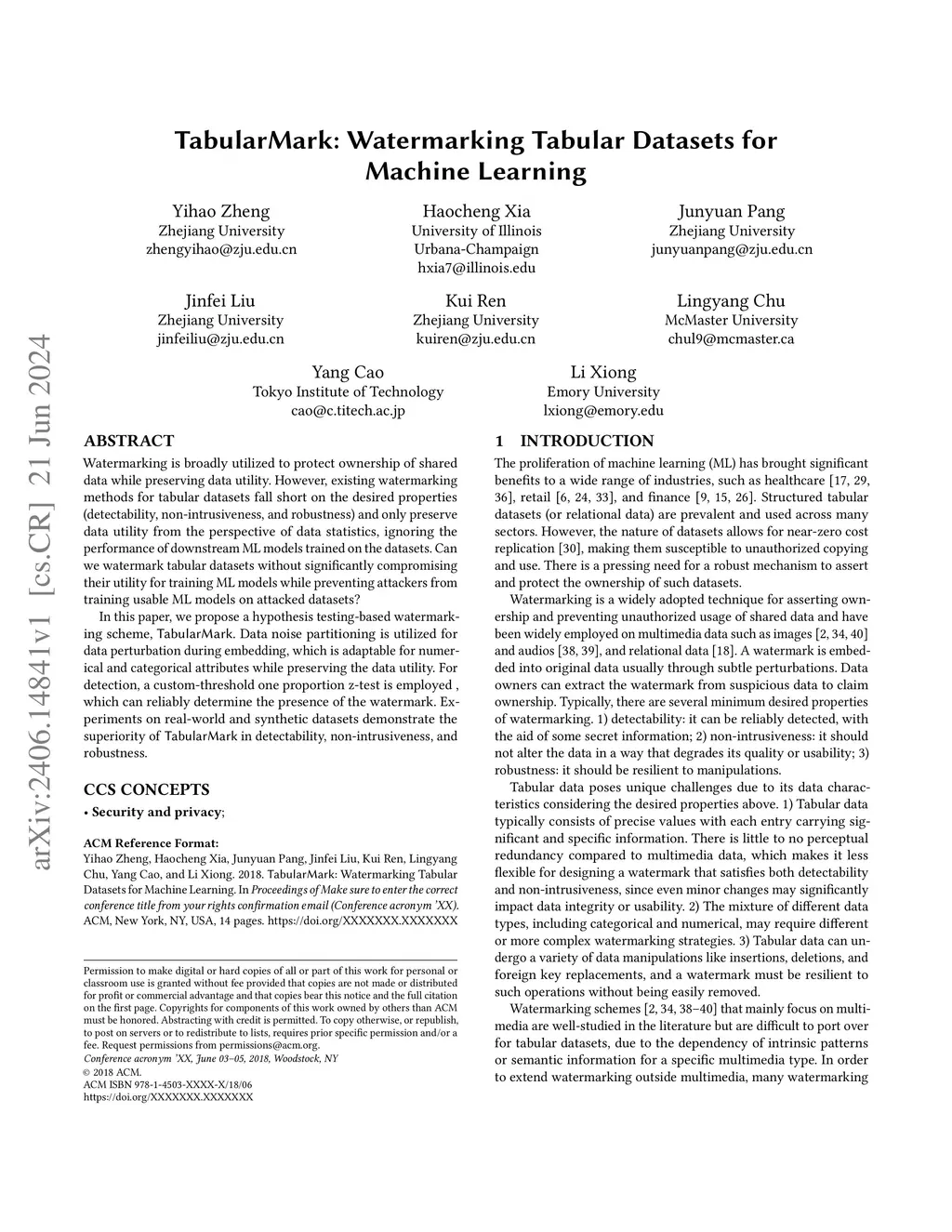 TabularMark: Watermarking Tabular Datasets for Machine Learning