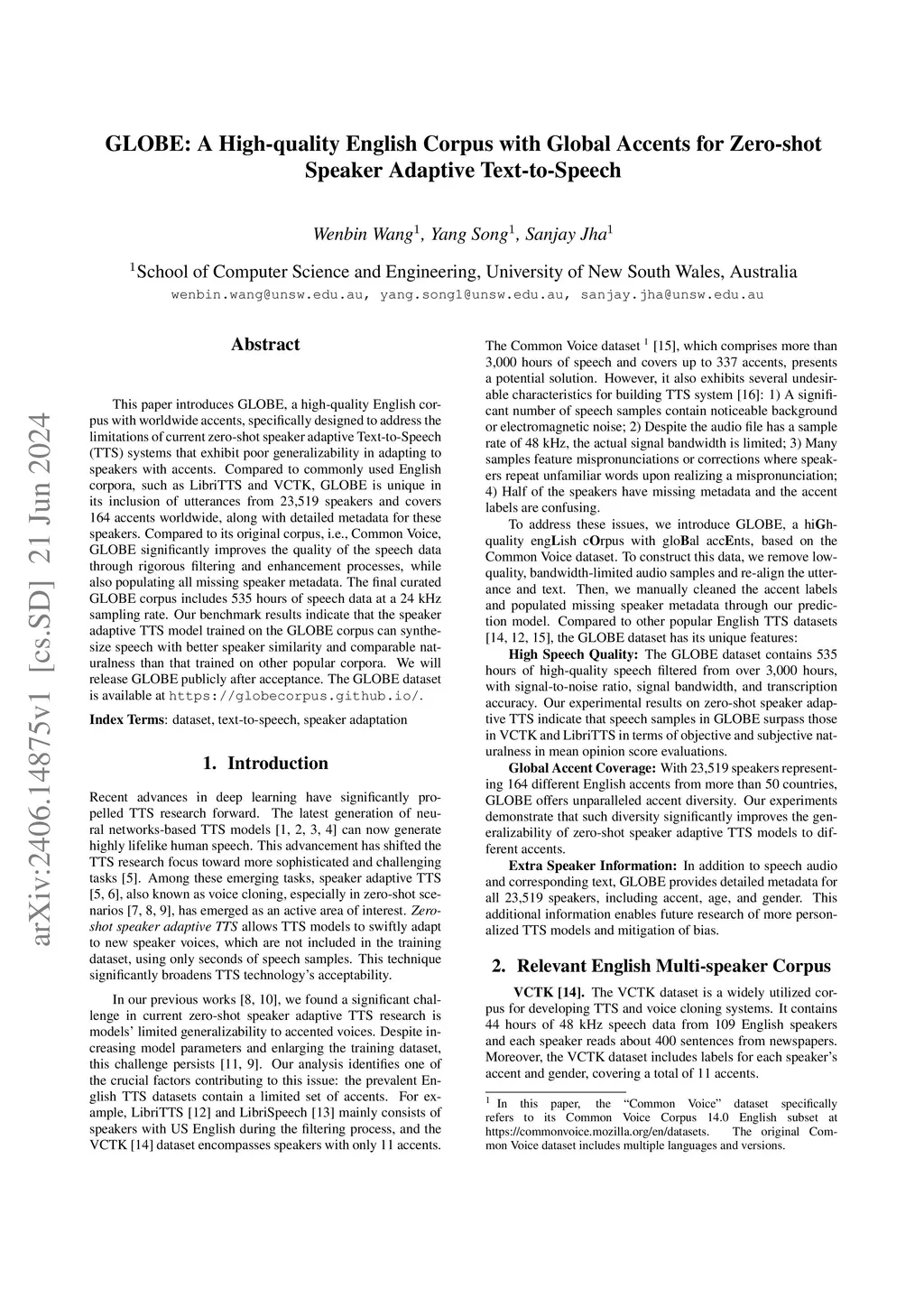 GLOBE: A High-quality English Corpus with Global Accents for Zero-shot