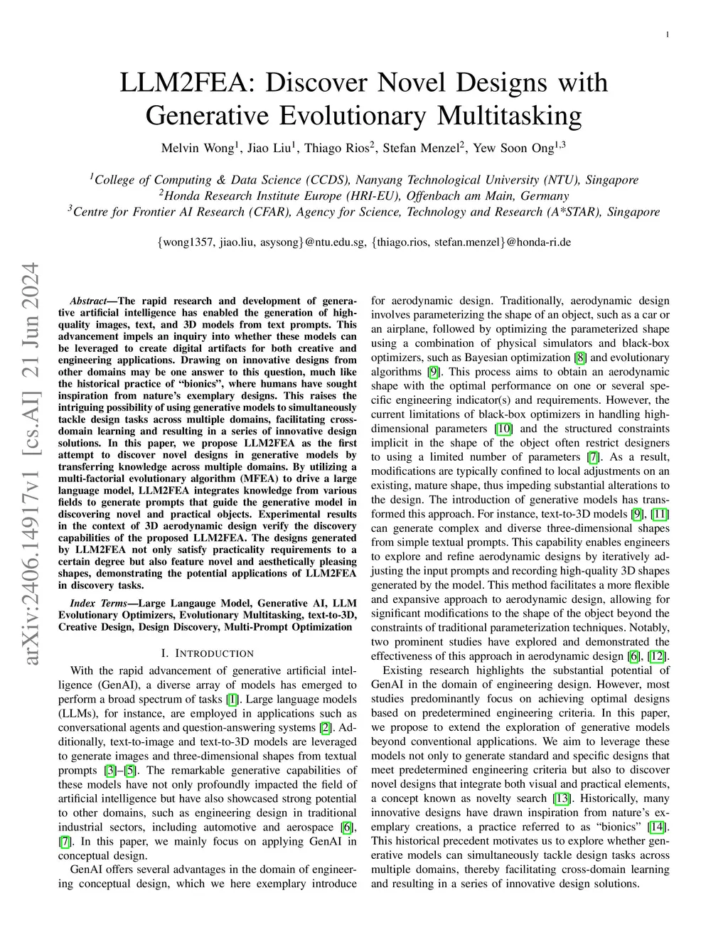 This paper presents LLM2TEA, a Large Language Model (LLM) driven MultiTask Evolutionary Algorithm, representing the first agentic AI designer of its kind operating with generative evolutionary multitasking (GEM). LLM2TEA enables the crossbreeding of solutions from multiple domains, fostering novel solutions that transcend disciplinary boundaries. Of particular interest is the ability to discover designs that are both novel and conforming to real-world physical specifications. LLM2TEA comprises an LLM to generate genotype samples from text prompts describing target objects, a text-to-3D generative model to produce corresponding phenotypes, a classifier to interpret its semantic representations, and a computational simulator to assess its physical properties. Novel LLM-based multitask evolutionary operators are introduced to guide the search towards high-performing, practically viable designs. Experimental results in conceptual design optimization validate the effectiveness of LLM2TEA, showing 97% to 174% improvements in the diversity of novel designs over the current text-to-3D baseline. Moreover, over 73% of the generated designs outperform the top 1% of designs produced by the text-to-3D baseline in terms of physical performance. The designs produced by LLM2TEA are not only aesthetically creative but also functional in real-world contexts. Several of these designs have been successfully 3D printed, demonstrating the ability of our approach to transform AI-generated outputs into tangible, physical designs. These designs underscore the potential of LLM2TEA as a powerful tool for complex design optimization and discovery, capable of producing novel and physically viable designs.