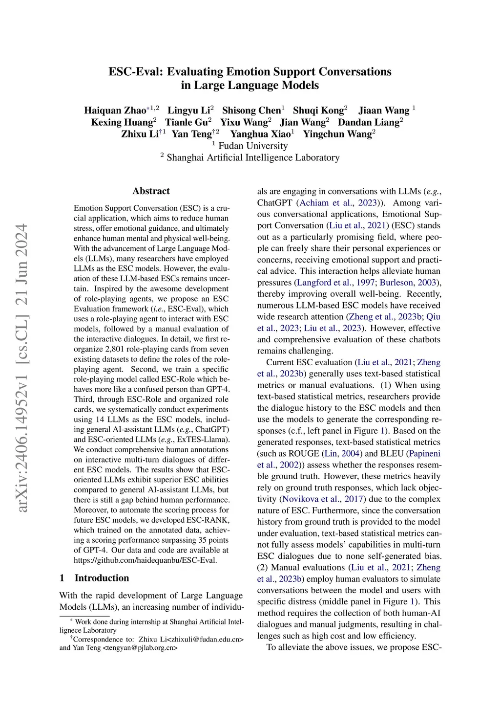 ESC-Eval: Evaluating Emotion Support Conversations in Large Language
