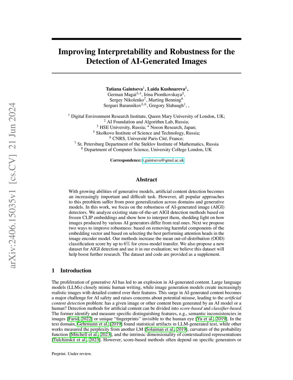 With growing abilities of generative models, artificial content detection becomes an increasingly important and difficult task. However, all popular approaches to this problem suffer from poor generalization across domains and generative models. In this work, we focus on the robustness of AI-generated image (AIGI) detectors. We analyze existing state-of-the-art AIGI detection methods based on frozen CLIP embeddings and show how to interpret them, shedding light on how images produced by various AI generators differ from real ones. Next we propose two ways to improve robustness: based on removing harmful components of the embedding vector and based on selecting the best performing attention heads in the image encoder model. Our methods increase the mean out-of-distribution (OOD) classification score by up to 6% for cross-model transfer. We also propose a new dataset for AIGI detection and use it in our evaluation; we believe this dataset will help boost further research. The dataset and code are provided as a supplement.
