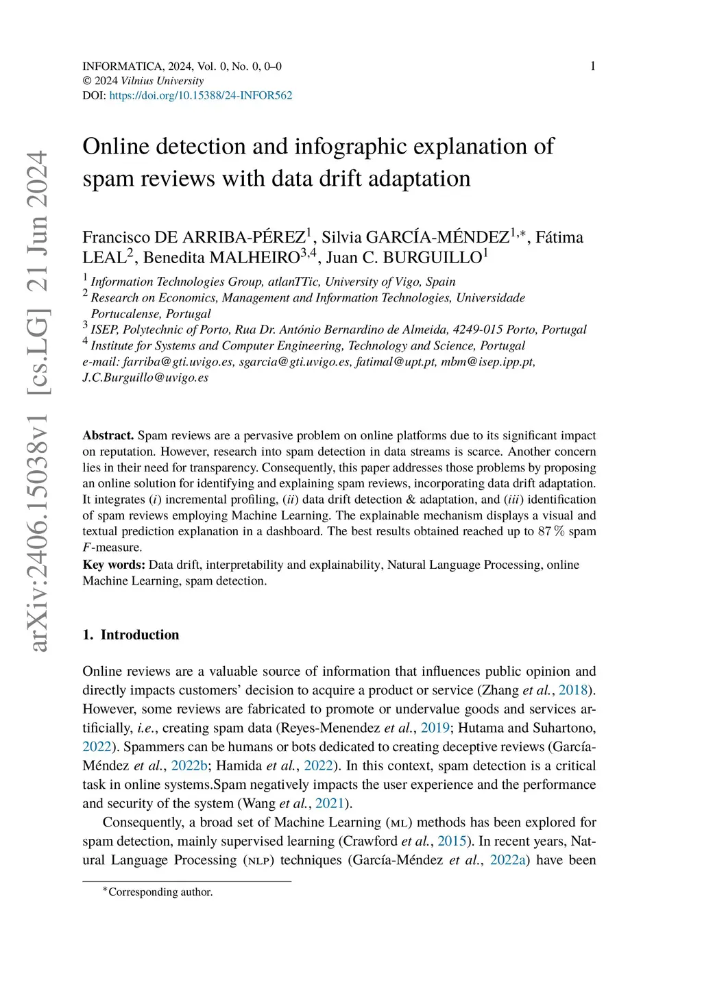 Online detection and infographic explanation of spam reviews with data