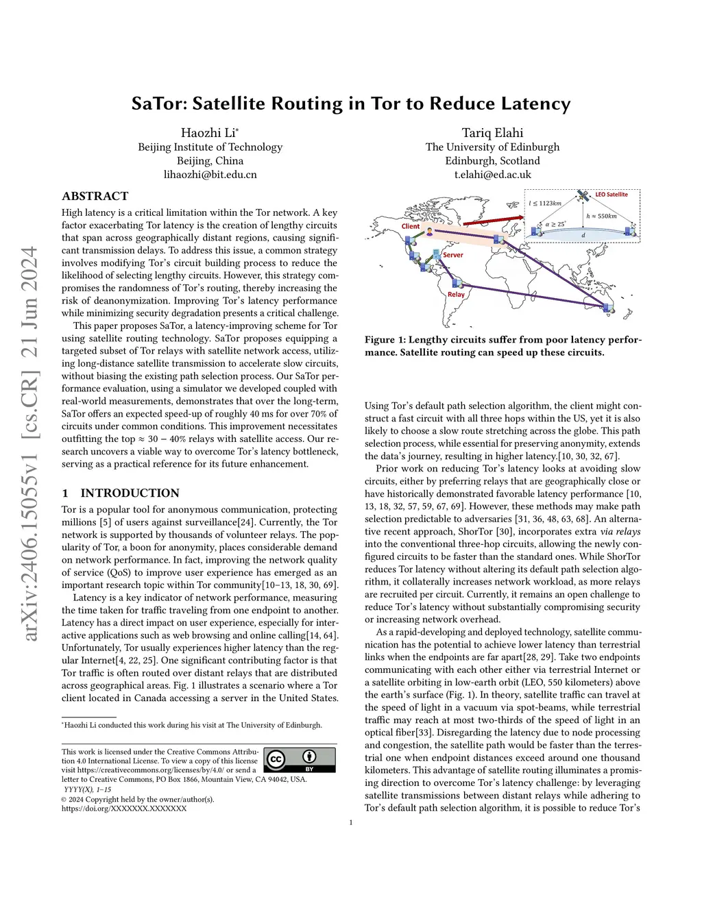 SaTor: Satellite Routing in Tor to Reduce Latency