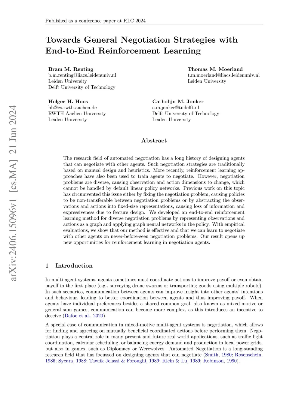 Towards General Negotiation Strategies with End-to-End Reinforcement