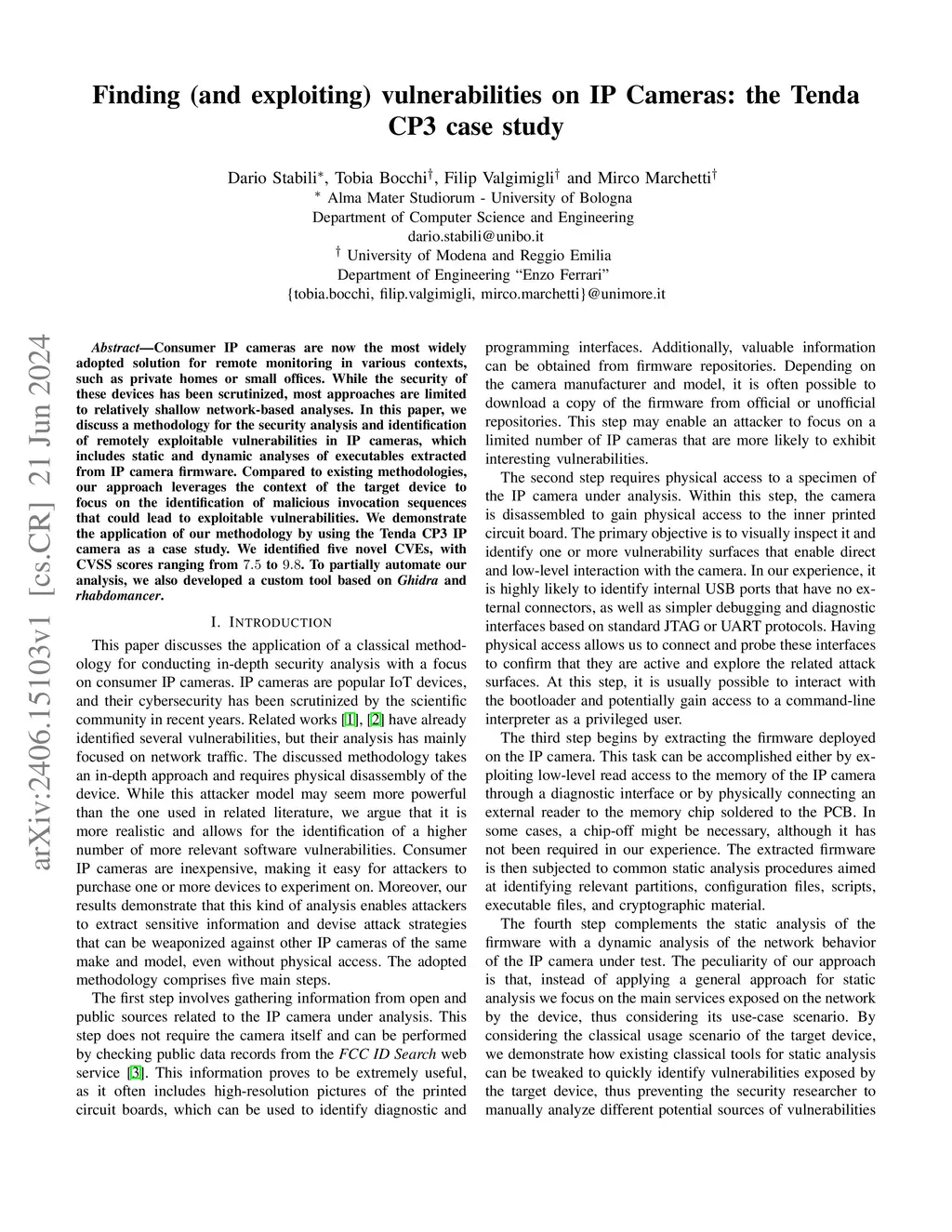 Finding (and exploiting) vulnerabilities on IP Cameras: the Tenda CP3