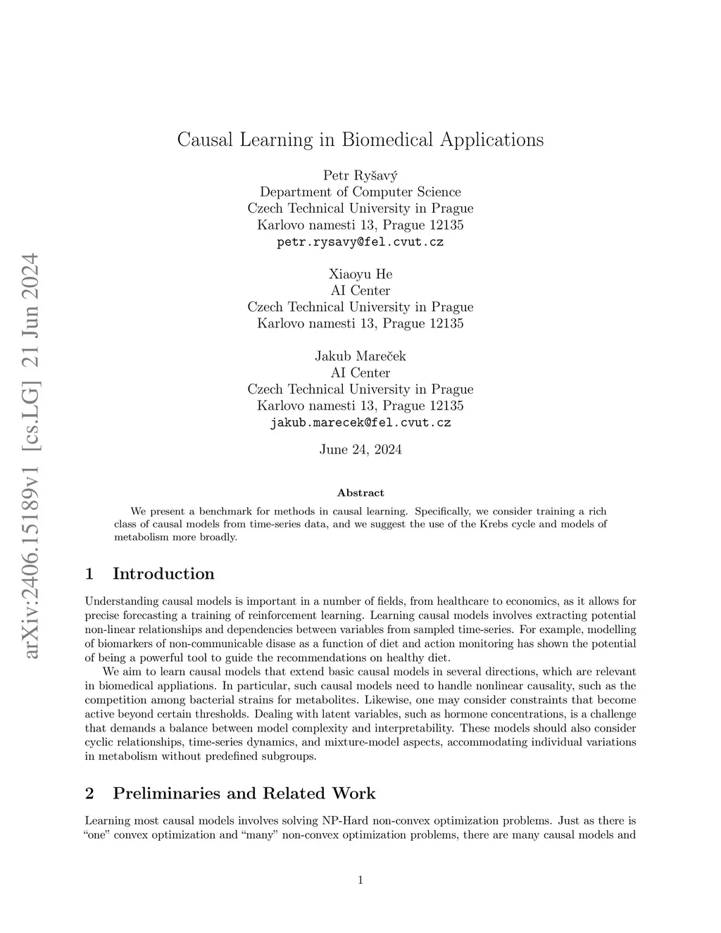 We present a benchmark for methods in causal learning. Specifically, we consider training a rich class of causal models from time-series data, and we suggest the use of the Krebs cycle and models of metabolism more broadly.