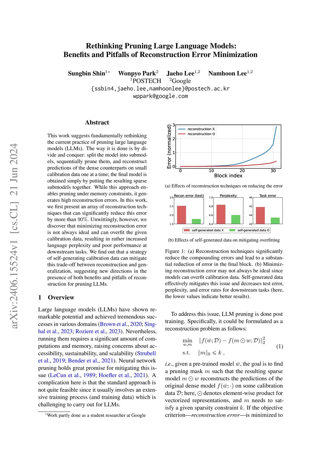 This work suggests fundamentally rethinking the current practice of pruning large language models (LLMs). The way it is done is by divide and conquer: split the model into submodels, sequentially prune them, and reconstruct predictions of the dense counterparts on small calibration data one at a time; the final model is obtained simply by putting the resulting sparse submodels together. While this approach enables pruning under memory constraints, it generates high reconstruction errors. In this work, we first present an array of reconstruction techniques that can significantly reduce this error by more than . Unwittingly, however, we discover that minimizing reconstruction error is not always ideal and can overfit the given calibration data, resulting in rather increased language perplexity and poor performance at downstream tasks. We find out that a strategy of self-generating calibration data can mitigate this trade-off between reconstruction and generalization, suggesting new directions in the presence of both benefits and pitfalls of reconstruction for pruning LLMs.