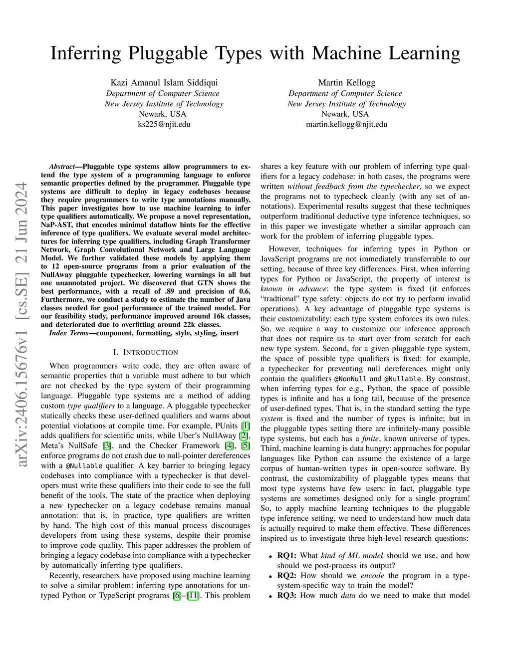 Pluggable type systems allow programmers to extend the type system of a programming language to enforce semantic properties defined by the programmer. Pluggable type systems are difficult to deploy in legacy codebases because they require programmers to write type annotations manually. This paper investigates how to use machine learning to infer type qualifiers automatically. We propose a novel representation, NaP-AST, that encodes minimal dataflow hints for the effective inference of type qualifiers. We evaluate several model architectures for inferring type qualifiers, including Graph Transformer Network, Graph Convolutional Network and Large Language Model. We further validated these models by applying them to 12 open-source programs from a prior evaluation of the NullAway pluggable typechecker, lowering warnings in all but one unannotated project. We discovered that GTN shows the best performance, with a recall of .89 and precision of 0.6. Furthermore, we conduct a study to estimate the number of Java classes needed for good performance of the trained model. For our feasibility study, performance improved around 16k classes, and deteriorated due to overfitting around 22k classes.