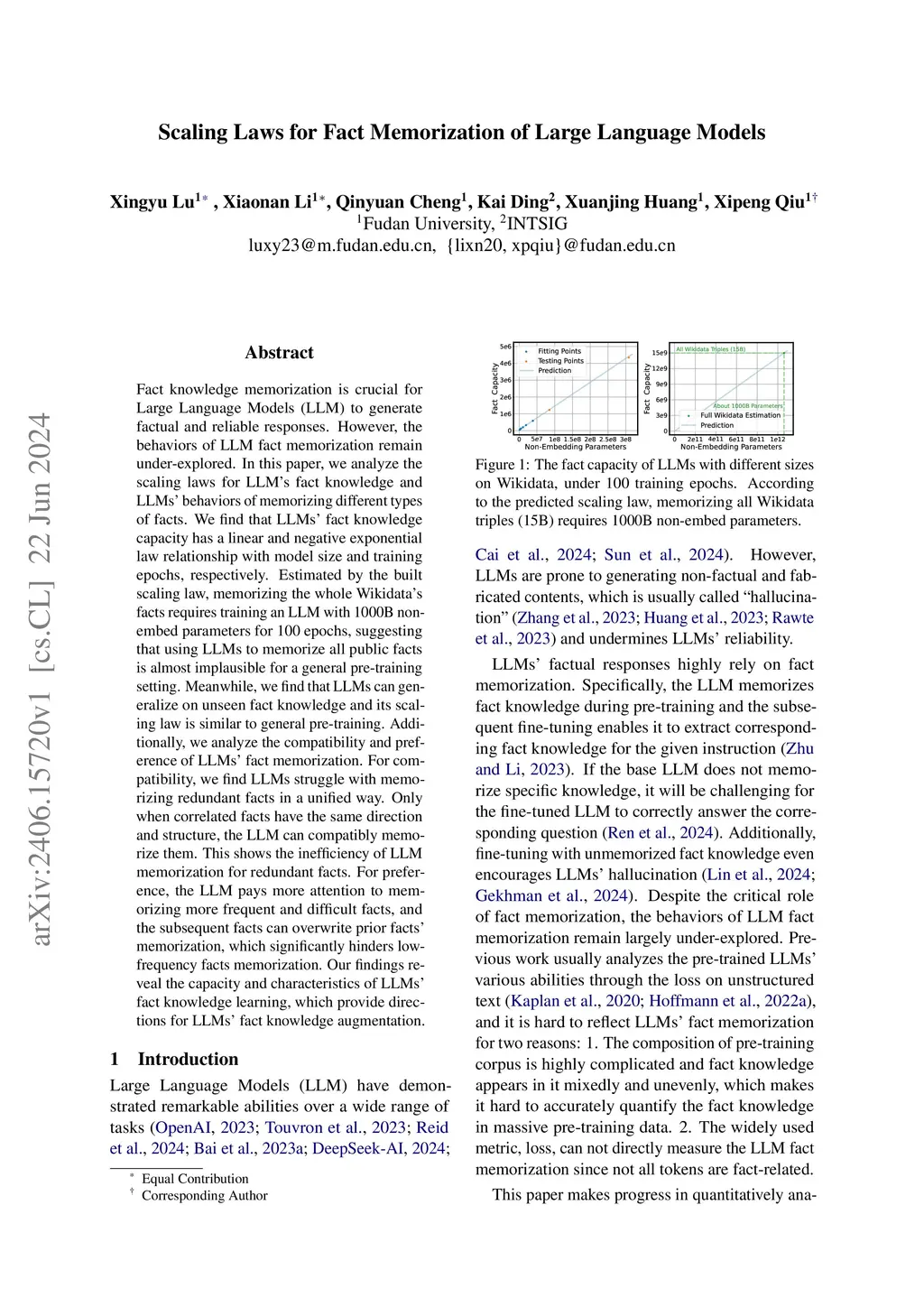 Scaling Laws for Fact Memorization of Large Language Models