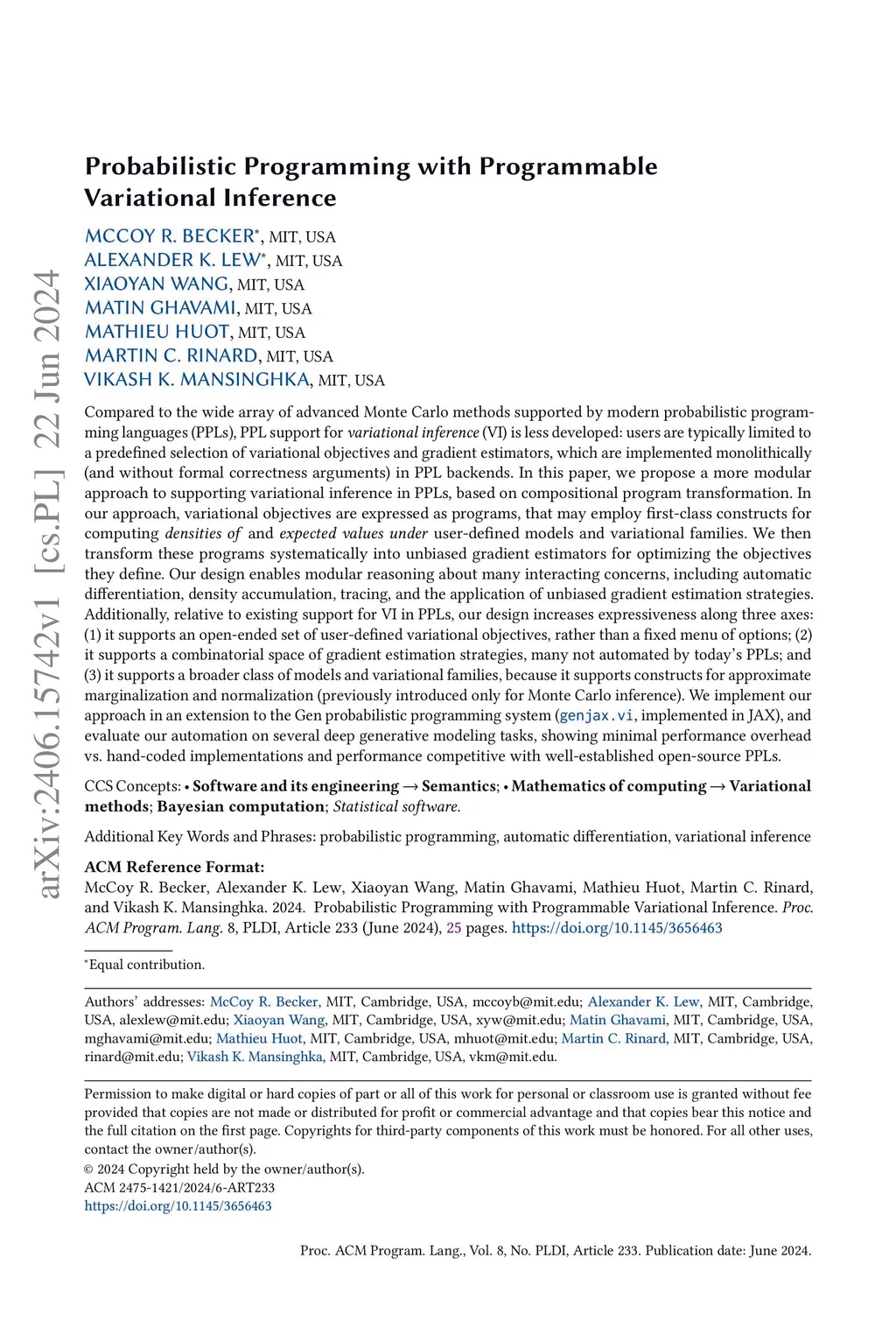 Compared to the wide array of advanced Monte Carlo methods supported by modern probabilistic programming languages (PPLs), PPL support for variational inference (VI) is less developed: users are typically limited to a predefined selection of variational objectives and gradient estimators, which are implemented monolithically (and without formal correctness arguments) in PPL backends. In this paper, we propose a more modular approach to supporting variational inference in PPLs, based on compositional program transformation. In our approach, variational objectives are expressed as programs, that may employ first-class constructs for computing densities of and expected values under user-defined models and variational families. We then transform these programs systematically into unbiased gradient estimators for optimizing the objectives they define. Our design enables modular reasoning about many interacting concerns, including automatic differentiation, density accumulation, tracing, and the application of unbiased gradient estimation strategies. Additionally, relative to existing support for VI in PPLs, our design increases expressiveness along three axes: (1) it supports an open-ended set of user-defined variational objectives, rather than a fixed menu of options; (2) it supports a combinatorial space of gradient estimation strategies, many not automated by today's PPLs; and (3) it supports a broader class of models and variational families, because it supports constructs for approximate marginalization and normalization (previously introduced only for Monte Carlo inference). We implement our approach in an extension to the Gen probabilistic programming system (genjax.vi, implemented in JAX), and evaluate on several deep generative modeling tasks, showing minimal performance overhead vs. hand-coded implementations and performance competitive with well-established open-source PPLs.