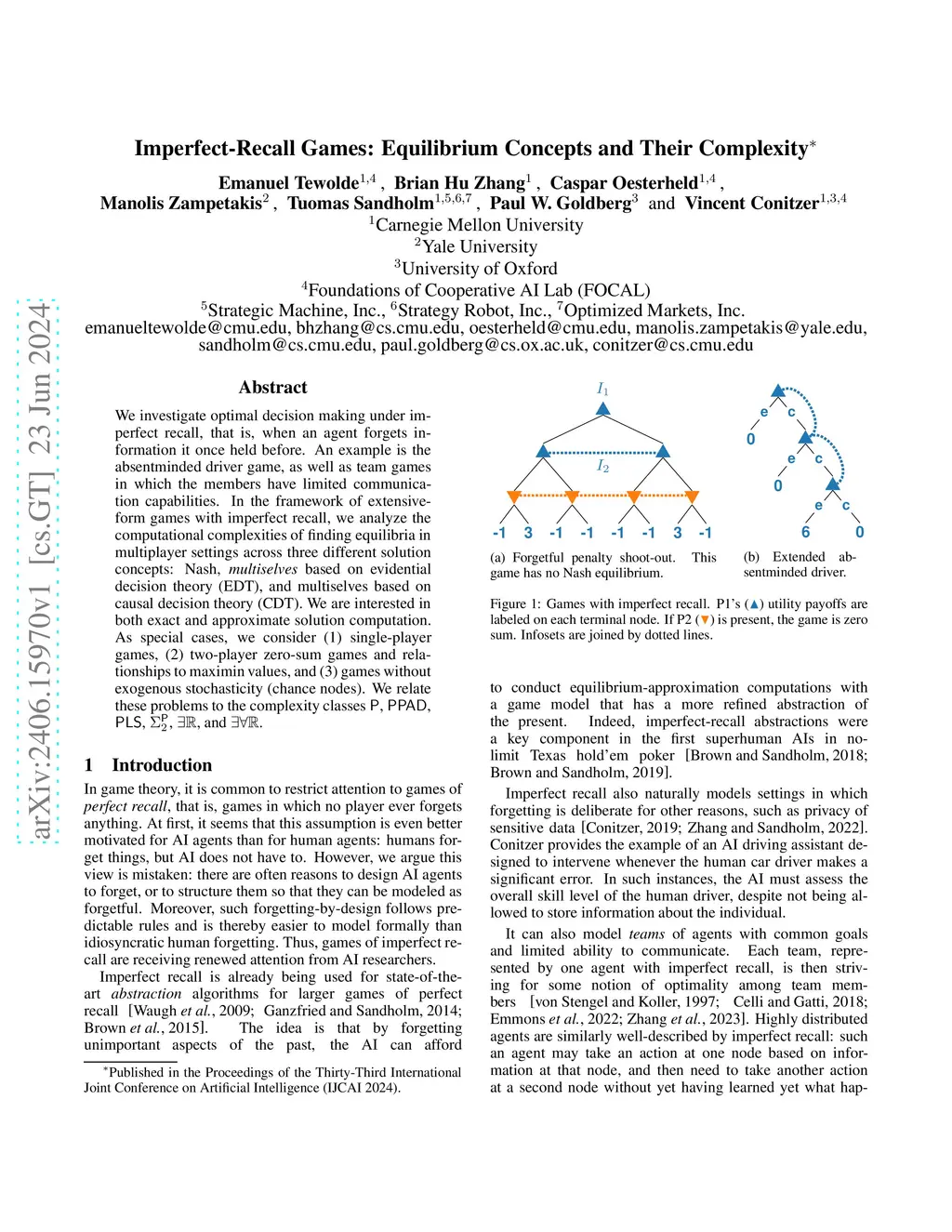 We investigate optimal decision making under imperfect recall, that is, when an agent forgets information it once held before. An example is the absentminded driver game, as well as team games in which the members have limited communication capabilities. In the framework of extensive-form games with imperfect recall, we analyze the computational complexities of finding equilibria in multiplayer settings across three different solution concepts: Nash, multiselves based on evidential decision theory (EDT), and multiselves based on causal decision theory (CDT). We are interested in both exact and approximate solution computation. As special cases, we consider (1) single-player games, (2) two-player zero-sum games and relationships to maximin values, and (3) games without exogenous stochasticity (chance nodes). We relate these problems to the complexity classes P, PPAD, PLS, , R, and R.