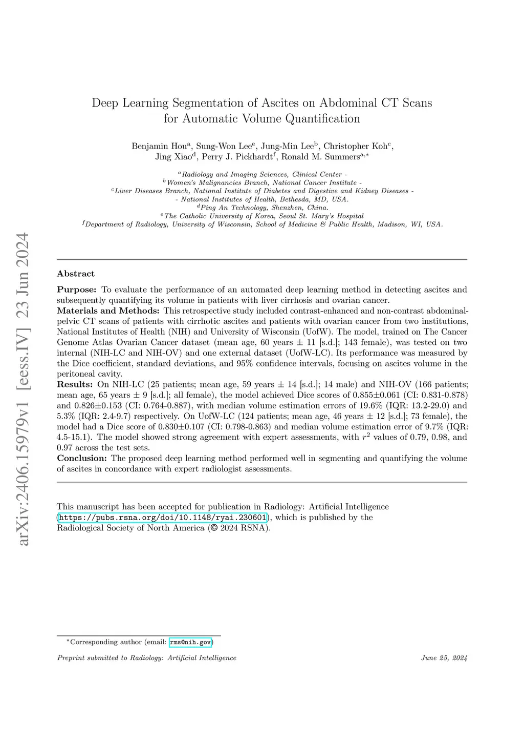 Deep Learning Segmentation of Ascites on Abdominal CT Scans for