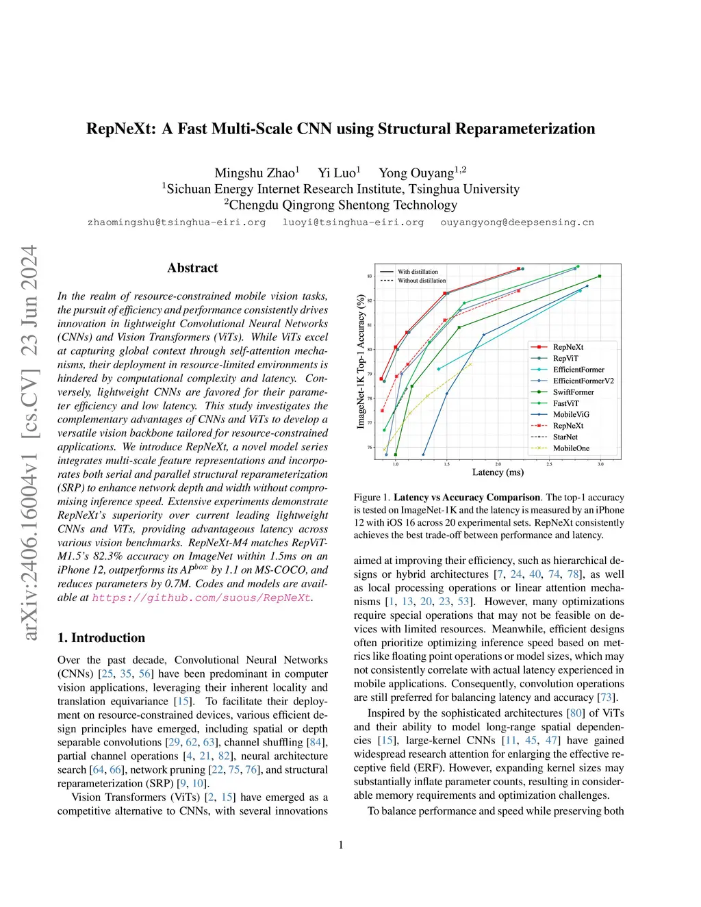 In the realm of resource-constrained mobile vision tasks, the pursuit of efficiency and performance consistently drives innovation in lightweight Convolutional Neural Networks (CNNs) and Vision Transformers (ViTs). While ViTs excel at capturing global context through self-attention mechanisms, their deployment in resource-limited environments is hindered by computational complexity and latency. Conversely, lightweight CNNs are favored for their parameter efficiency and low latency. This study investigates the complementary advantages of CNNs and ViTs to develop a versatile vision backbone tailored for resource-constrained applications. We introduce RepNeXt, a novel model series integrates multi-scale feature representations and incorporates both serial and parallel structural reparameterization (SRP) to enhance network depth and width without compromising inference speed. Extensive experiments demonstrate RepNeXt's superiority over current leading lightweight CNNs and ViTs, providing advantageous latency across various vision benchmarks. RepNeXt-M4 matches RepViT-M1.5's 82.3\% accuracy on ImageNet within 1.5ms on an iPhone 12, outperforms its AP by 1.3 on MS-COCO, and reduces parameters by 0.7M. Codes and models are available at https://github.com/suous/RepNeXt.