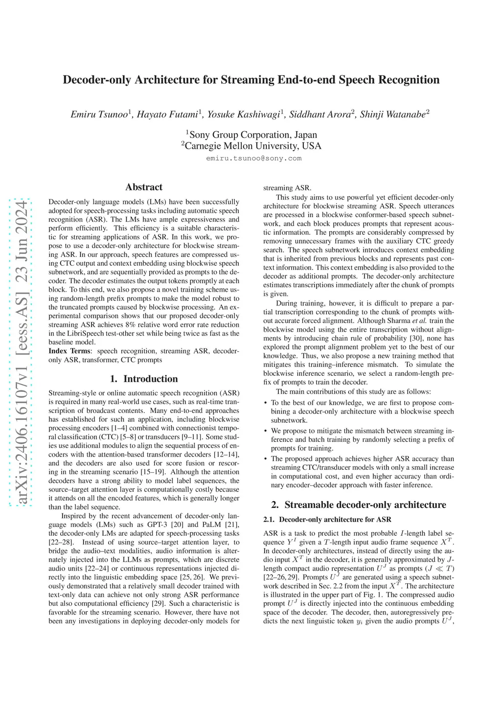 Decoder-only Architecture for Streaming End-to-end Speech Recognition