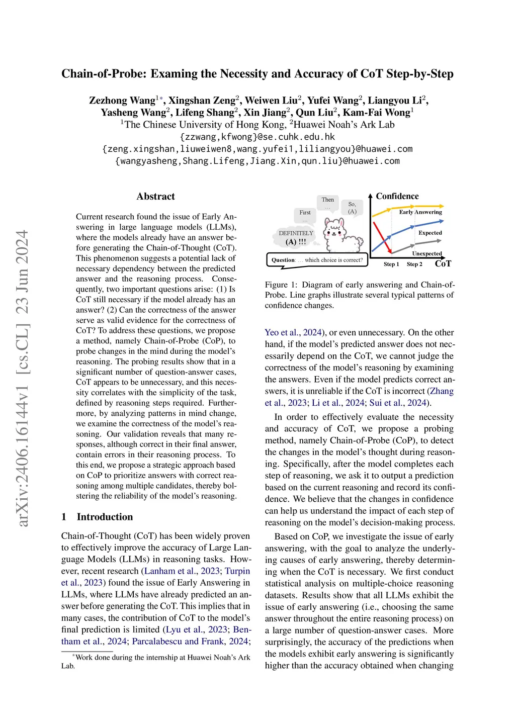 Current research found the issue of Early Answering in large language models (LLMs), where the models already have an answer before generating the Chain-of-Thought (CoT). This phenomenon suggests a potential lack of necessary dependency between the predicted answer and the reasoning process. Consequently, two important questions arise: (1) Is CoT still necessary if the model already has an answer? (2) Can the correctness of the answer serve as valid evidence for the correctness of CoT? To address these questions, we propose a method, namely Chain-of-Probe (CoP), to probe changes in the mind during the model's reasoning. The probing results show that in a significant number of question-answer cases, CoT appears to be unnecessary, and this necessity correlates with the simplicity of the task, defined by reasoning steps required. Furthermore, by analyzing patterns in mind change, we examine the correctness of the model's reasoning. Our validation reveals that many responses, although correct in their final answer, contain errors in their reasoning process. To this end, we propose a strategic approach based on CoP to prioritize answers with correct reasoning among multiple candidates, thereby bolstering the reliability of the model's reasoning.