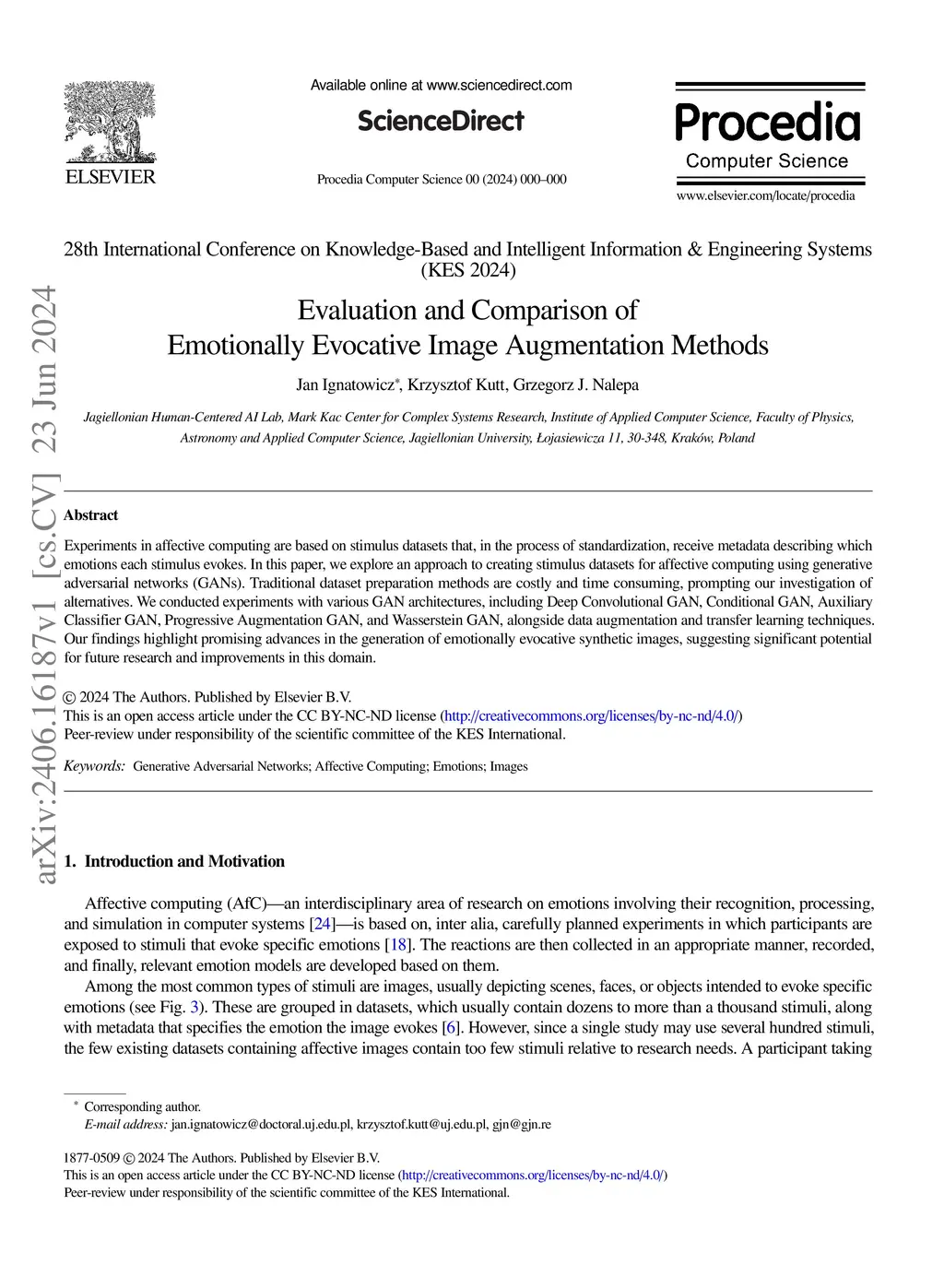 Experiments in affective computing are based on stimulus datasets that, in the process of standardization, receive metadata describing which emotions each stimulus evokes. In this paper, we explore an approach to creating stimulus datasets for affective computing using generative adversarial networks (GANs). Traditional dataset preparation methods are costly and time consuming, prompting our investigation of alternatives. We conducted experiments with various GAN architectures, including Deep Convolutional GAN, Conditional GAN, Auxiliary Classifier GAN, Progressive Augmentation GAN, and Wasserstein GAN, alongside data augmentation and transfer learning techniques. Our findings highlight promising advances in the generation of emotionally evocative synthetic images, suggesting significant potential for future research and improvements in this domain.