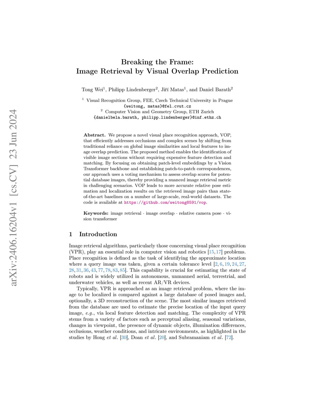 Breaking the Frame: Image Retrieval by Visual Overlap Prediction