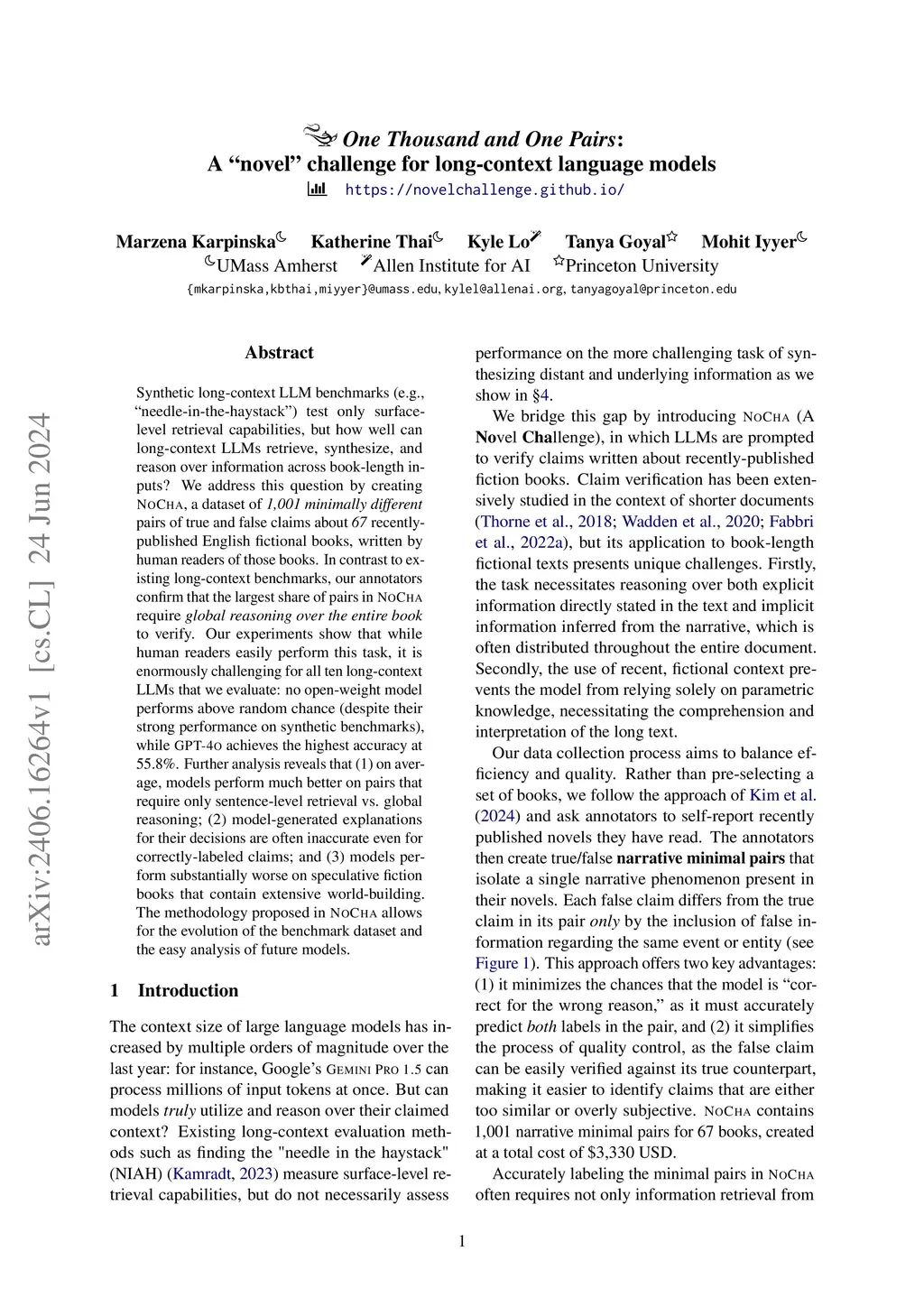 One Thousand and One Pairs: A "novel" challenge for long-context
